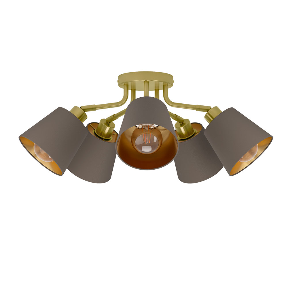 31535 Люстра потолочная MASERLO, 5X60(Е27), металл, кремово-золотой/текстиль, капучино создает в помещение уют и прекрасно дополняет интерьер квартиры или загородного дома, оформленный как в классическом, так и современном стиле. Продукцию, принадлежащую к дизайнерскому классу, создают только из самых качественных и безопасных материалов с использованием новейших технологий производства. В ней идеально выверена каждая деталь. Изделие преображает пространство, гармонично сочетая в себе уют, удобство и красоту. Этой стильной модели не страшны капризы моды — и через год, два, пять она будет смотреться также уместно.