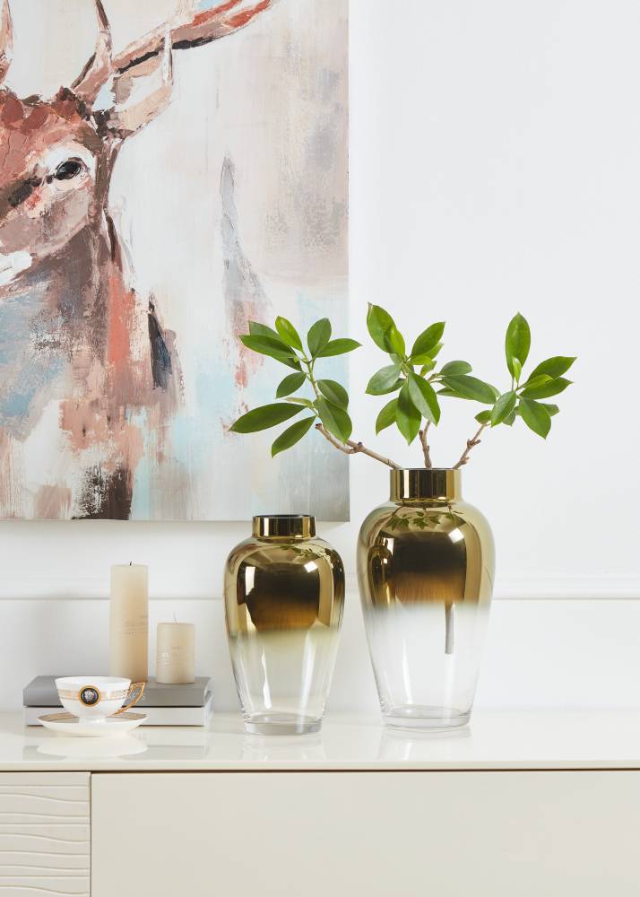 421363 Ваза декоративная KENYASI, H325, ?180, стекло, прозрачный, золотой, зеркальный создает в помещение уют и прекрасно дополняет интерьер квартиры или загородного дома, оформленный как в классическом, так и современном стиле. Продукцию, принадлежащую к дизайнерскому классу, создают только из самых качественных и безопасных материалов с использованием новейших технологий производства. В ней идеально выверена каждая деталь. Изделие преображает пространство, гармонично сочетая в себе уют, удобство и красоту. Этой стильной модели не страшны капризы моды — и через год, два, пять она будет смотреться также уместно.