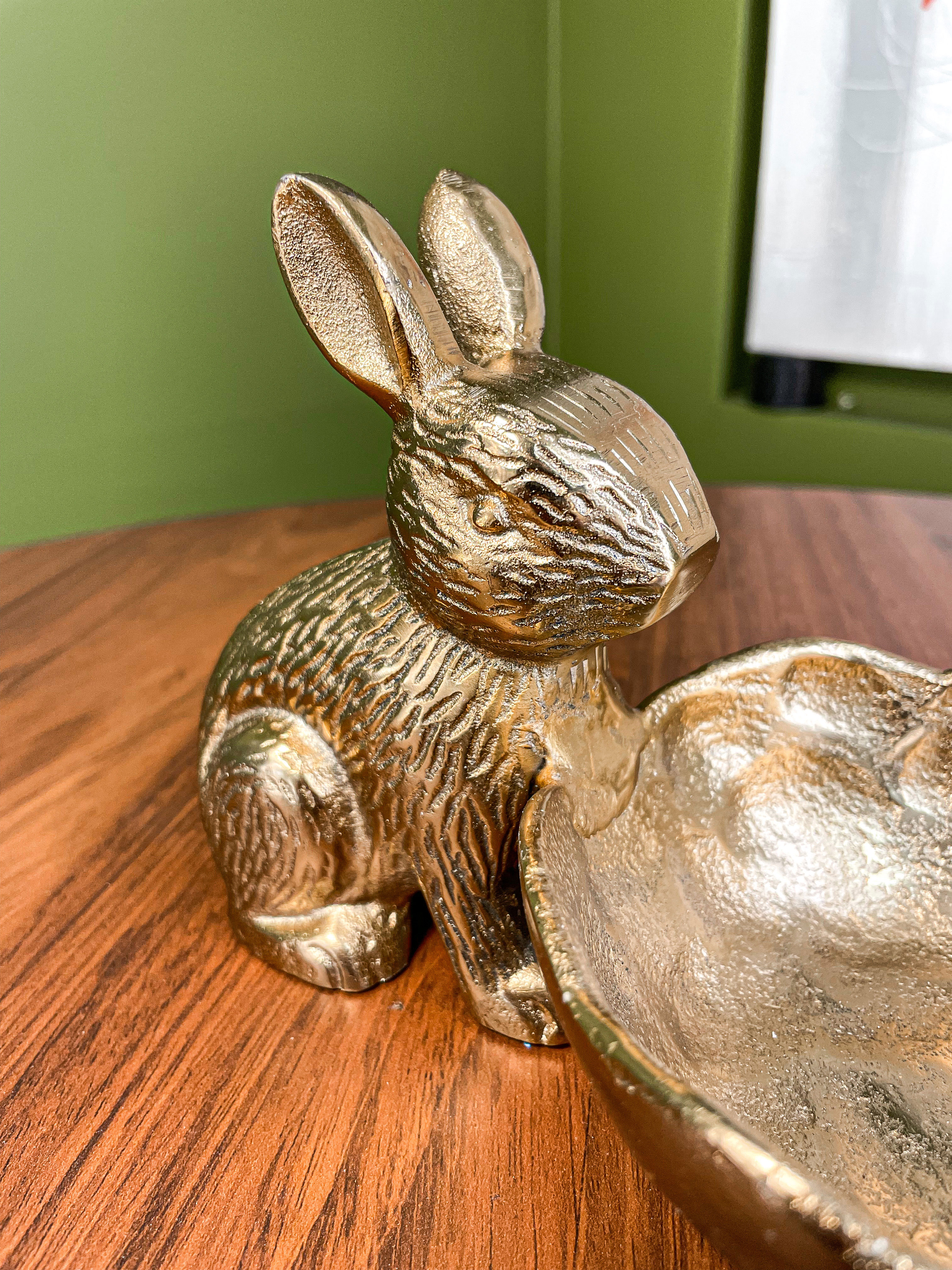 427295 Статуэтка Заяц с чашей AMBALAVA, L200, B120, H120, алюминий, золотой — это предмет интерьера, способный создать в пространстве неповторимую атмосферу шика и изящества. Четкость линий, благородство форм и идеально продуманная эргономика способны впечатлить и удовлетворить требования самых взыскательных покупателей и придать интерьеру особый колорит.