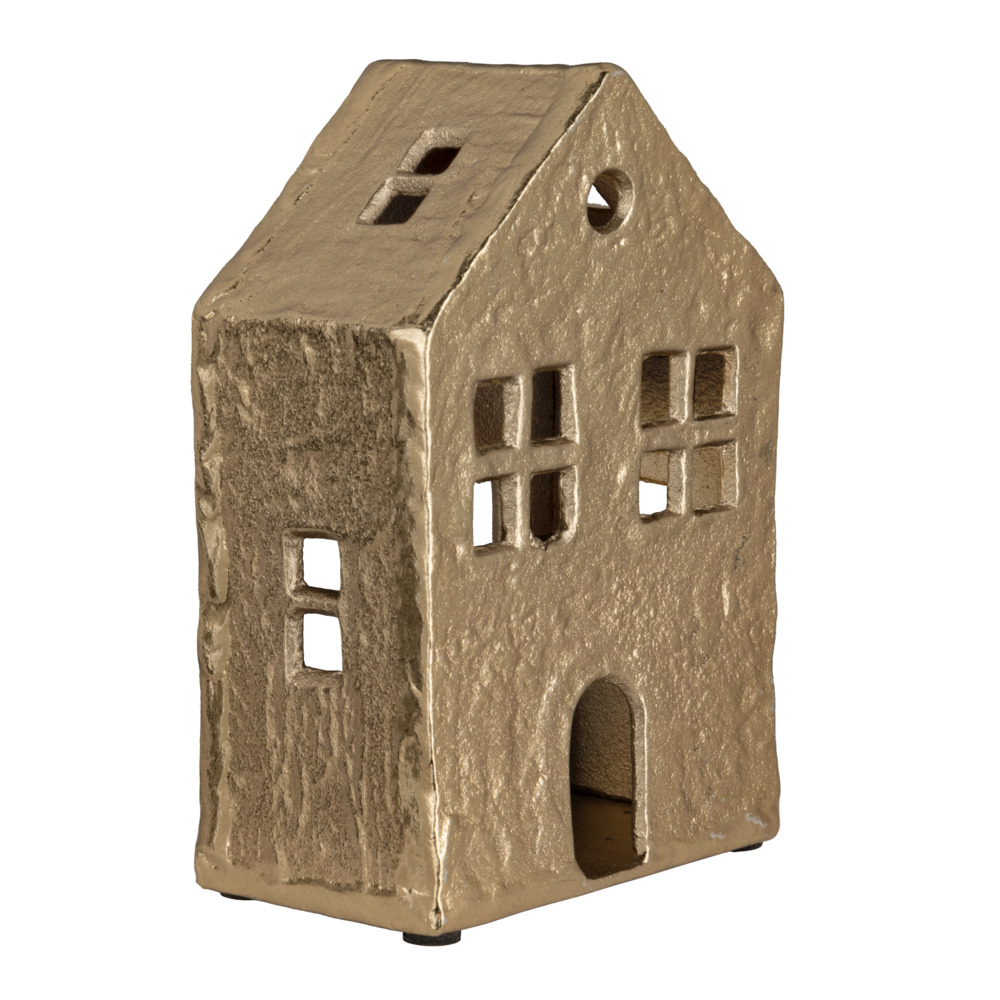 427601 Фигурка декоративная домик BELDERRIG, H190, L125, B75, золотой — это предмет интерьера, способный создать в пространстве неповторимую атмосферу шика и изящества. Четкость линий, благородство форм и идеально продуманная эргономика способны впечатлить и удовлетворить требования самых взыскательных покупателей и придать интерьеру особый колорит.