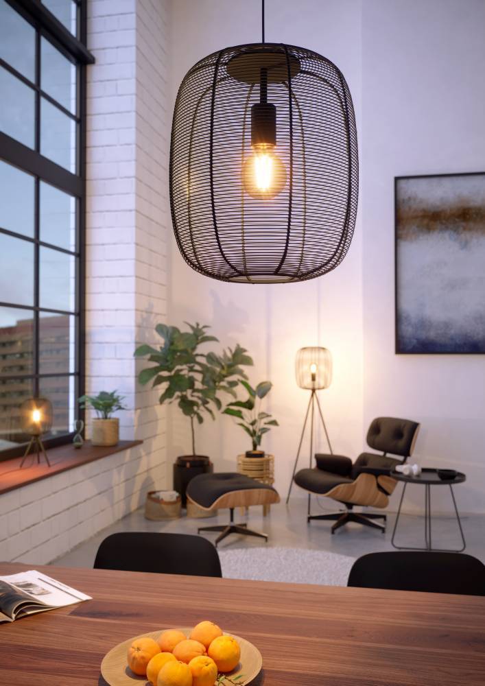 43965 Подвесной светильник (люстра) RINROE, 1X40W (E27), ?325, сталь, черный — это предмет интерьера, способный создать в пространстве неповторимую атмосферу шика и изящества. Четкость линий, благородство форм и идеально продуманная эргономика способны впечатлить и удовлетворить требования самых взыскательных покупателей и придать интерьеру особый колорит.