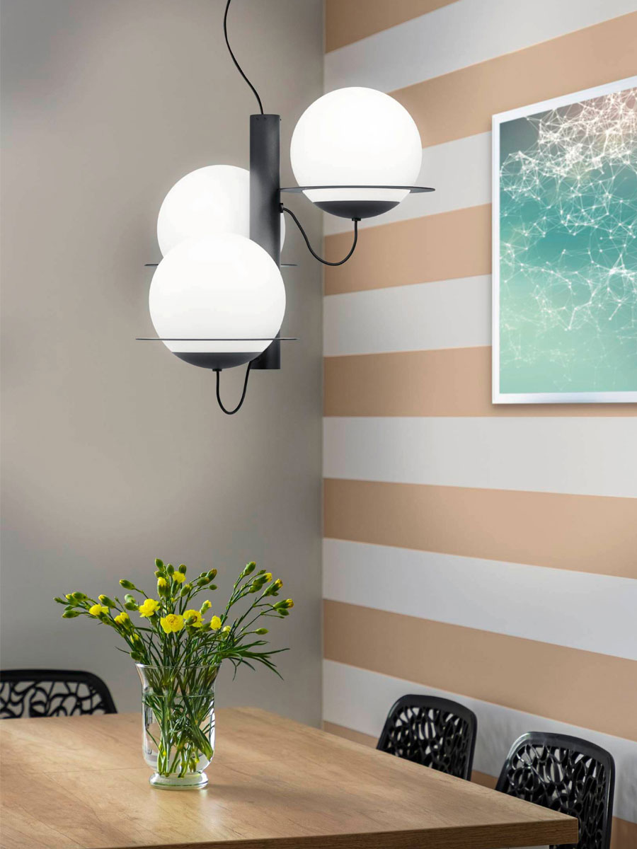 98364 Подвесной потолочный светильник (люстра) SABALETE — это предмет интерьера, способный создать в пространстве неповторимую атмосферу шика и изящества. Четкость линий, благородство форм и идеально продуманная эргономика способны впечатлить и удовлетворить требования самых взыскательных покупателей и придать интерьеру особый колорит.