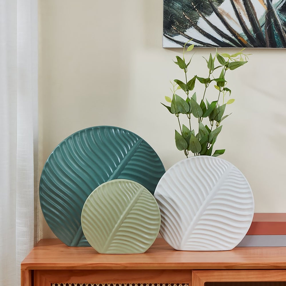 421011 Ваза декоративная TANABE, L335, B85, H310, керамика, зеленый — это предмет интерьера, способный создать в пространстве неповторимую атмосферу шика и изящества. Четкость линий, благородство форм и идеально продуманная эргономика способны впечатлить и удовлетворить требования самых взыскательных покупателей и придать интерьеру особый колорит.