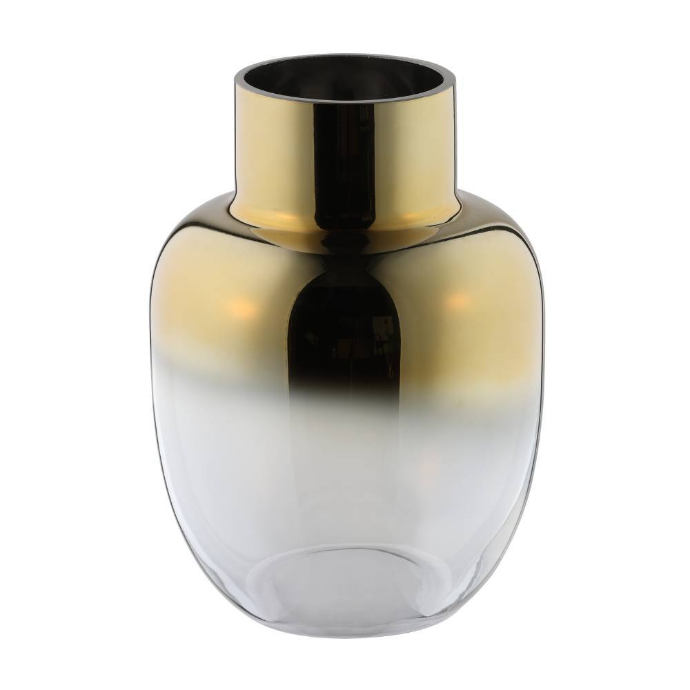 421235 Ваза декоративная SIRANANA, H200, ?144, стекло, прозрачный, цвет латунь создает в помещение уют и прекрасно дополняет интерьер квартиры или загородного дома, оформленный как в классическом, так и современном стиле. Продукцию, принадлежащую к дизайнерскому классу, создают только из самых качественных и безопасных материалов с использованием новейших технологий производства. В ней идеально выверена каждая деталь. Изделие преображает пространство, гармонично сочетая в себе уют, удобство и красоту. Этой стильной модели не страшны капризы моды — и через год, два, пять она будет смотреться также уместно.