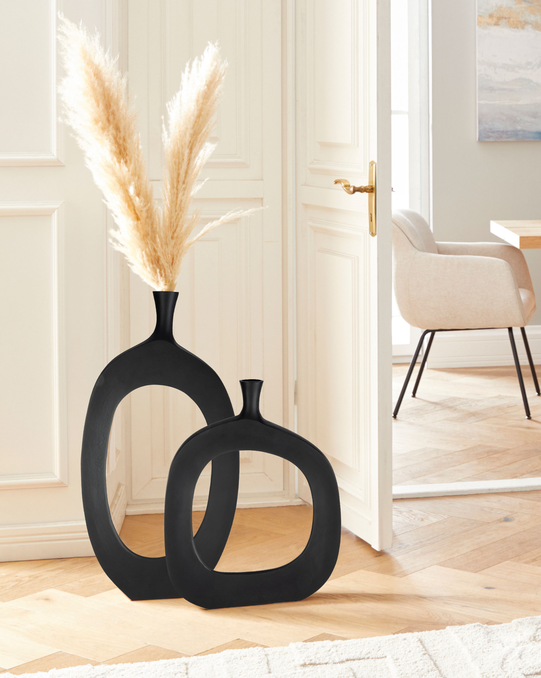 421314 Ваза декоративная ANKAREFO, L430, B60, H575, алюминий, черный создает в помещение уют и прекрасно дополняет интерьер квартиры или загородного дома, оформленный как в классическом, так и современном стиле. Продукцию, принадлежащую к дизайнерскому классу, создают только из самых качественных и безопасных материалов с использованием новейших технологий производства. В ней идеально выверена каждая деталь. Изделие преображает пространство, гармонично сочетая в себе уют, удобство и красоту. Этой стильной модели не страшны капризы моды — и через год, два, пять она будет смотреться также уместно.