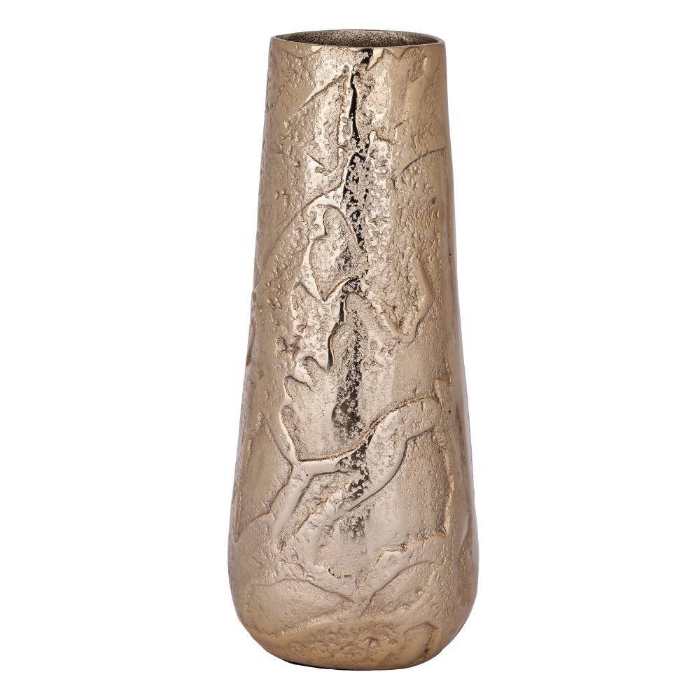 421317 Ваза декоративная KURASHIKI, H380, ?160, металл, золотой создает в помещение уют и прекрасно дополняет интерьер квартиры или загородного дома, оформленный как в классическом, так и современном стиле. Продукцию, принадлежащую к дизайнерскому классу, создают только из самых качественных и безопасных материалов с использованием новейших технологий производства. В ней идеально выверена каждая деталь. Изделие преображает пространство, гармонично сочетая в себе уют, удобство и красоту. Этой стильной модели не страшны капризы моды — и через год, два, пять она будет смотреться также уместно.