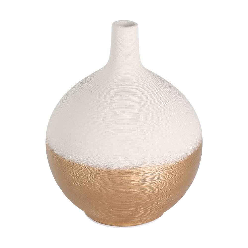 421417 Ваза декоративная SARYKSU, H185, керамика, белый, золотой создает в помещение уют и прекрасно дополняет интерьер квартиры или загородного дома, оформленный как в классическом, так и современном стиле. Продукцию, принадлежащую к дизайнерскому классу, создают только из самых качественных и безопасных материалов с использованием новейших технологий производства. В ней идеально выверена каждая деталь. Изделие преображает пространство, гармонично сочетая в себе уют, удобство и красоту. Этой стильной модели не страшны капризы моды — и через год, два, пять она будет смотреться также уместно.