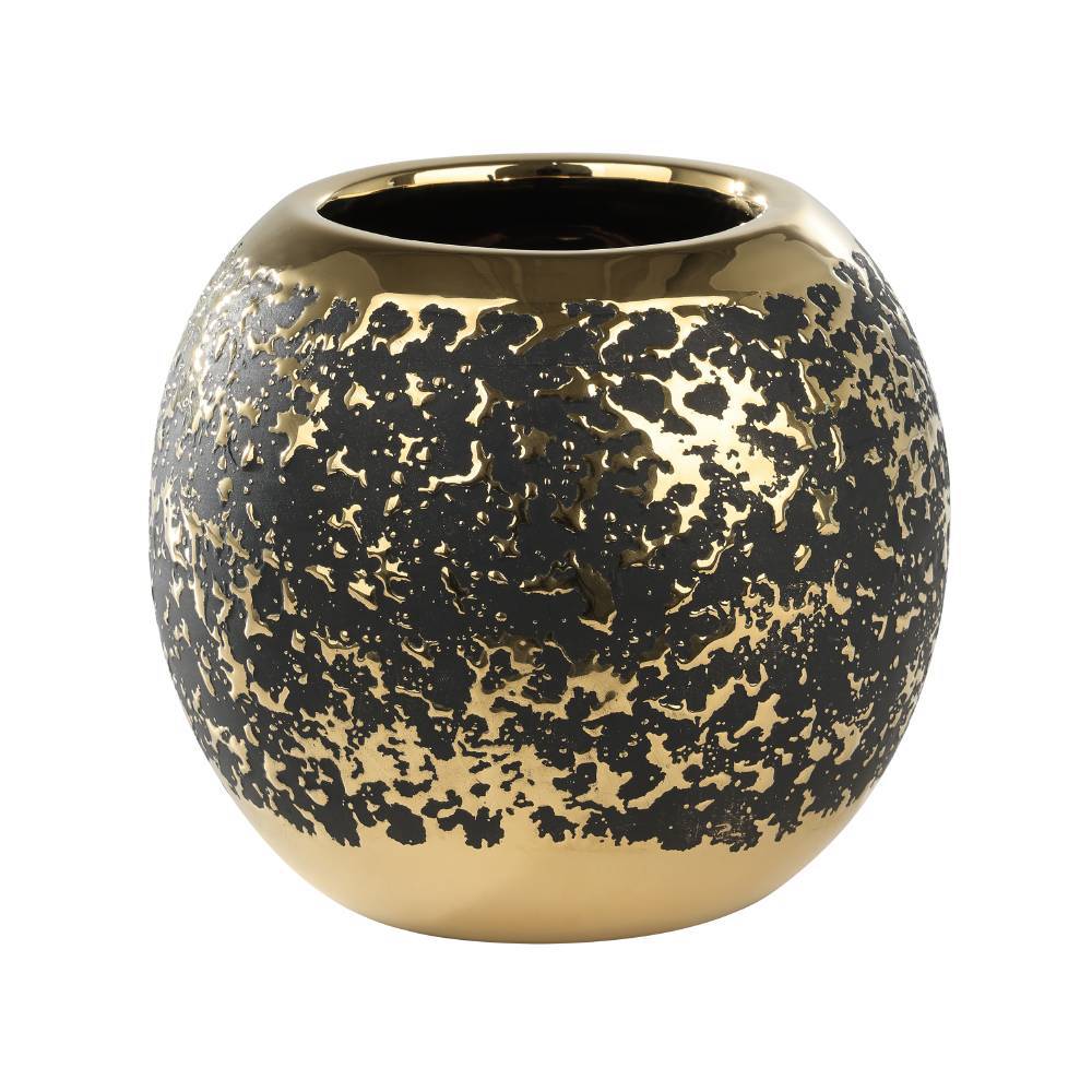 421491 Ваза ARROYITO, ?170, H160, керамика, черный, золотой создает в помещение уют и прекрасно дополняет интерьер квартиры или загородного дома, оформленный как в классическом, так и современном стиле. Продукцию, принадлежащую к дизайнерскому классу, создают только из самых качественных и безопасных материалов с использованием новейших технологий производства. В ней идеально выверена каждая деталь. Изделие преображает пространство, гармонично сочетая в себе уют, удобство и красоту. Этой стильной модели не страшны капризы моды — и через год, два, пять она будет смотреться также уместно.