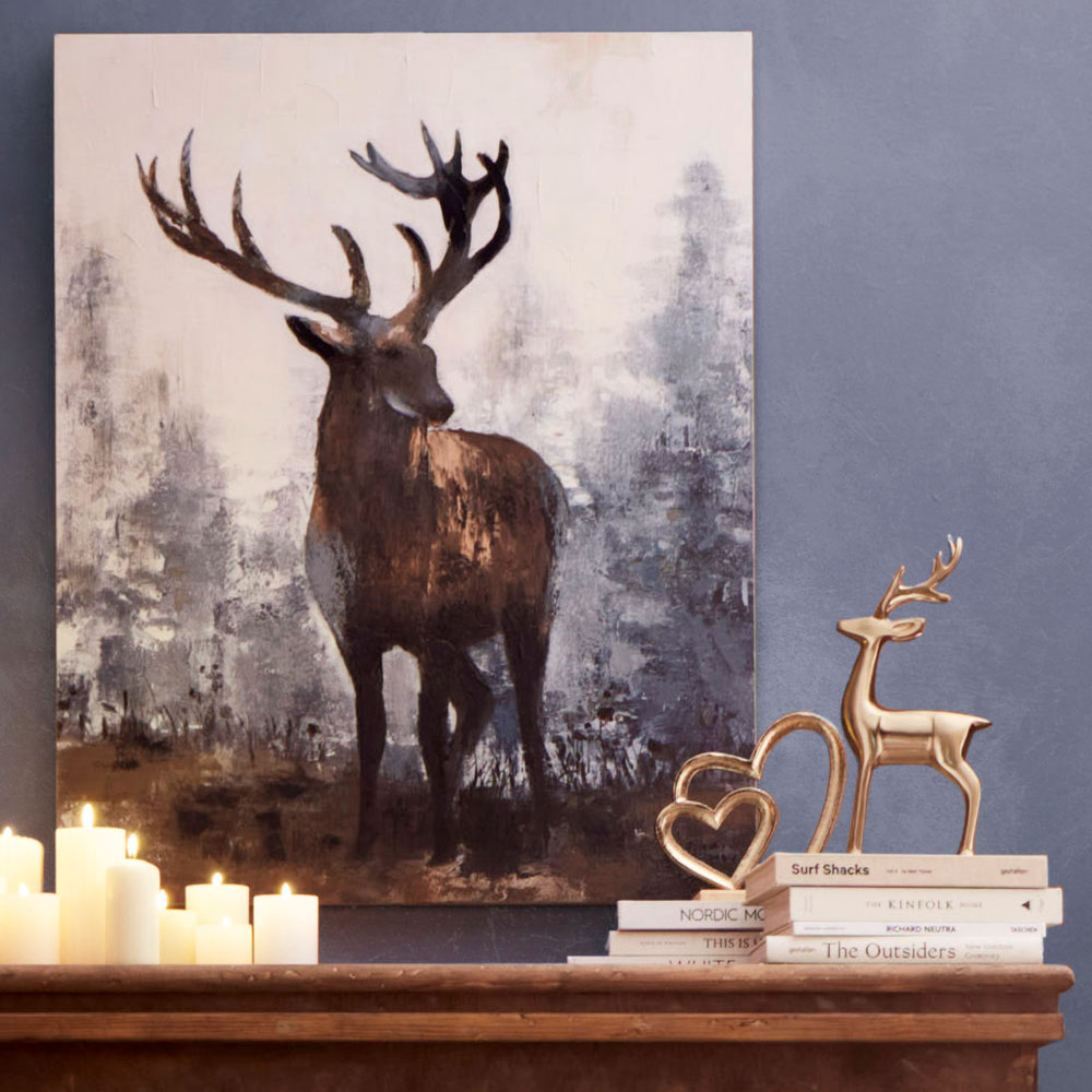 427129 Статуэтка Олень BALIGUIAN, L170, B60, H355, алюминий, цвет золотой — это предмет интерьера, способный создать в пространстве неповторимую атмосферу шика и изящества. Четкость линий, благородство форм и идеально продуманная эргономика способны впечатлить и удовлетворить требования самых взыскательных покупателей и придать интерьеру особый колорит.