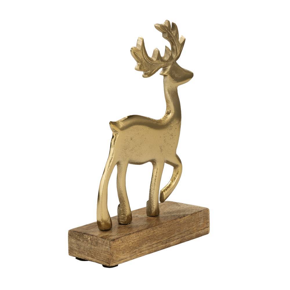 427573 Фигурка Олень BALIGUIAN L130, B50, H200 алюминий, дерево, золотой, натуральный создает в помещение уют и прекрасно дополняет интерьер квартиры или загородного дома, оформленный как в классическом, так и современном стиле. Продукцию, принадлежащую к дизайнерскому классу, создают только из самых качественных и безопасных материалов с использованием новейших технологий производства. В ней идеально выверена каждая деталь. Изделие преображает пространство, гармонично сочетая в себе уют, удобство и красоту. Этой стильной модели не страшны капризы моды — и через год, два, пять она будет смотреться также уместно.