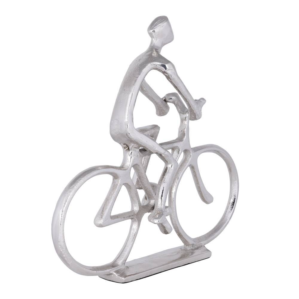 429742 Фигурка Велосипедист ZADIWIN, L240, B60, H235, алюминий, никель создает в помещение уют и прекрасно дополняет интерьер квартиры или загородного дома, оформленный как в классическом, так и современном стиле. Продукцию, принадлежащую к дизайнерскому классу, создают только из самых качественных и безопасных материалов с использованием новейших технологий производства. В ней идеально выверена каждая деталь. Изделие преображает пространство, гармонично сочетая в себе уют, удобство и красоту. Этой стильной модели не страшны капризы моды — и через год, два, пять она будет смотреться также уместно.