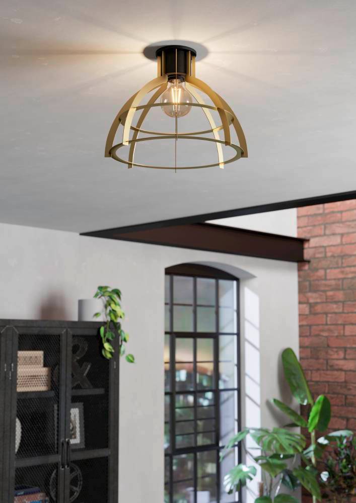 43766 Потолочный светильник STYLLINGTON, 1Х40W, E27, H315, ?415, сталь, черный, золотой — это предмет интерьера, способный создать в пространстве неповторимую атмосферу шика и изящества. Четкость линий, благородство форм и идеально продуманная эргономика способны впечатлить и удовлетворить требования самых взыскательных покупателей и придать интерьеру особый колорит.