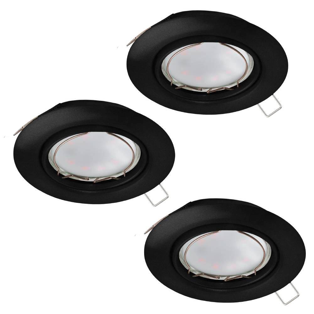 900752 Комплект встраиваемых светильников PENETO, 3X4,6W (GU10), ?87, сталь, черный создает в помещение уют и прекрасно дополняет интерьер квартиры или загородного дома, оформленный как в классическом, так и современном стиле. Продукцию, принадлежащую к дизайнерскому классу, создают только из самых качественных и безопасных материалов с использованием новейших технологий производства. В ней идеально выверена каждая деталь. Изделие преображает пространство, гармонично сочетая в себе уют, удобство и красоту. Этой стильной модели не страшны капризы моды — и через год, два, пять она будет смотреться также уместно.