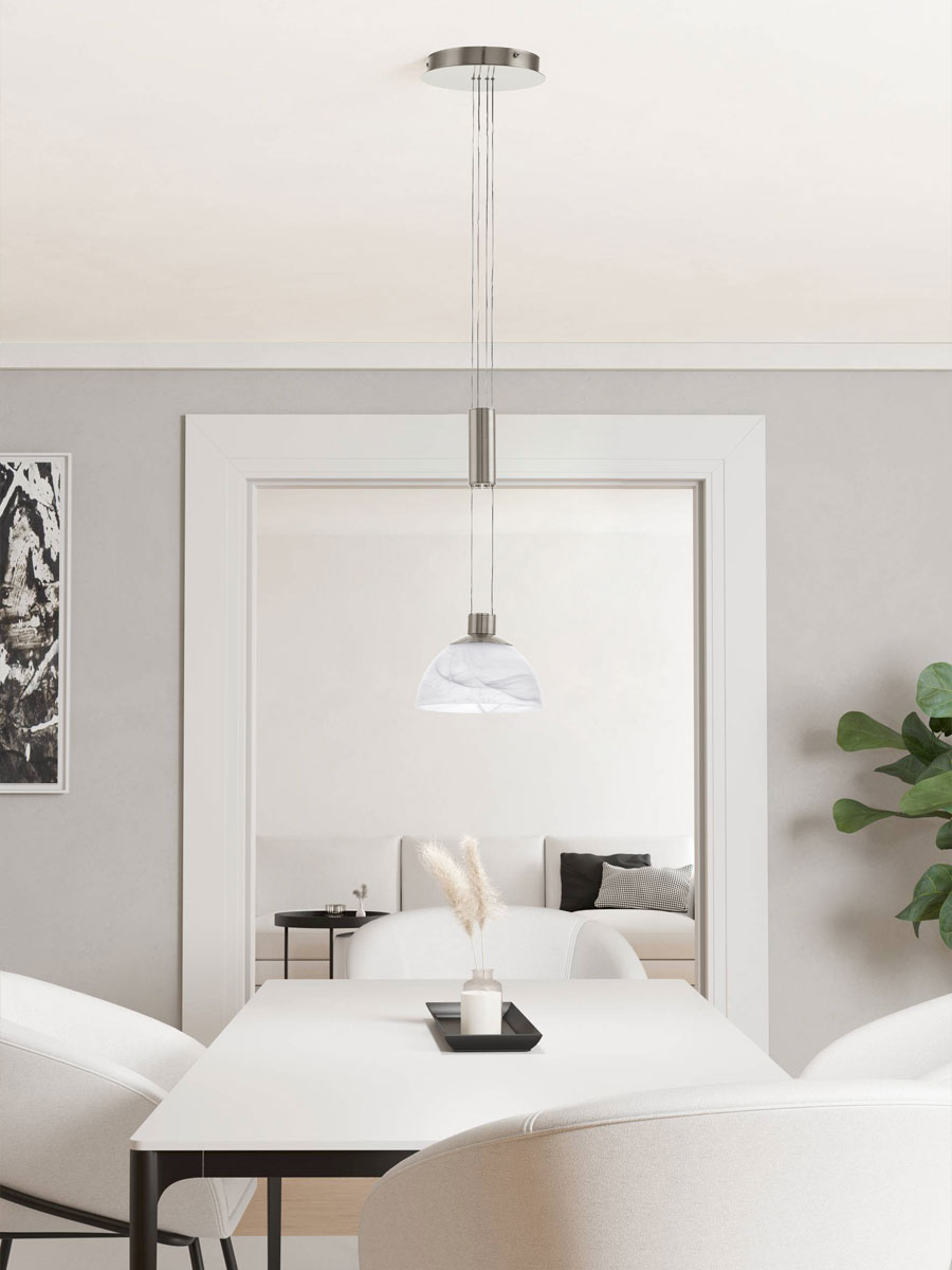 93466 Подвесной потолочный светильник (люстра) MONTEFIO светодиодный с регулировкой высоты — это предмет интерьера, способный создать в пространстве неповторимую атмосферу шика и изящества. Четкость линий, благородство форм и идеально продуманная эргономика способны впечатлить и удовлетворить требования самых взыскательных покупателей и придать интерьеру особый колорит.