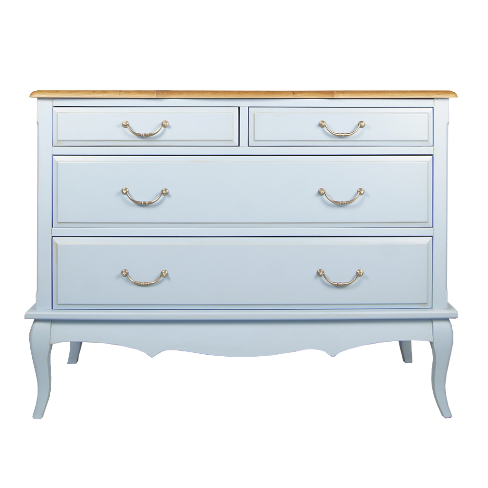 Комод «Leontina Blue» на 4 ящика. В комод "Leontina" влюбляешься раз и навсегда. Созданный в лучших традициях прованса, вместительный, одновременно простой и очень "коммуникабельный" в отношении интерьера в целом, он готов спрятать все самое драгоценное и предлагает пространство для творчества.