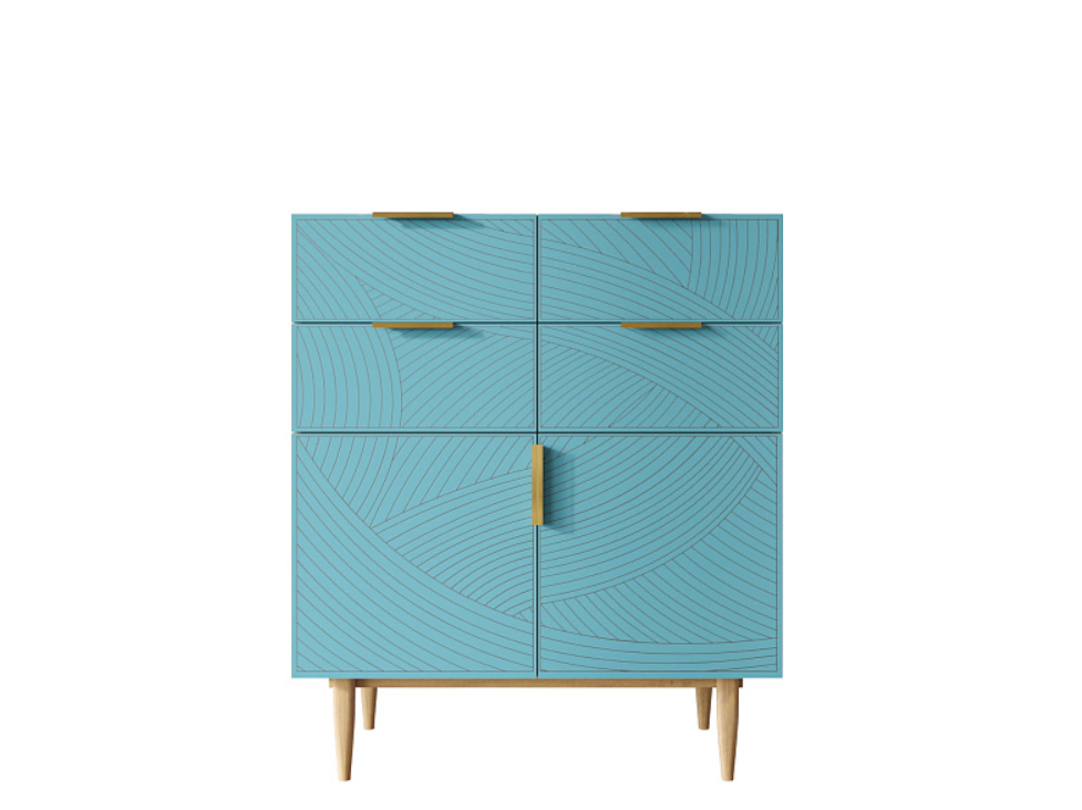 Голубой Большой комод с четырьмя ящиками и дверками "Line" LN17/GR1/blue