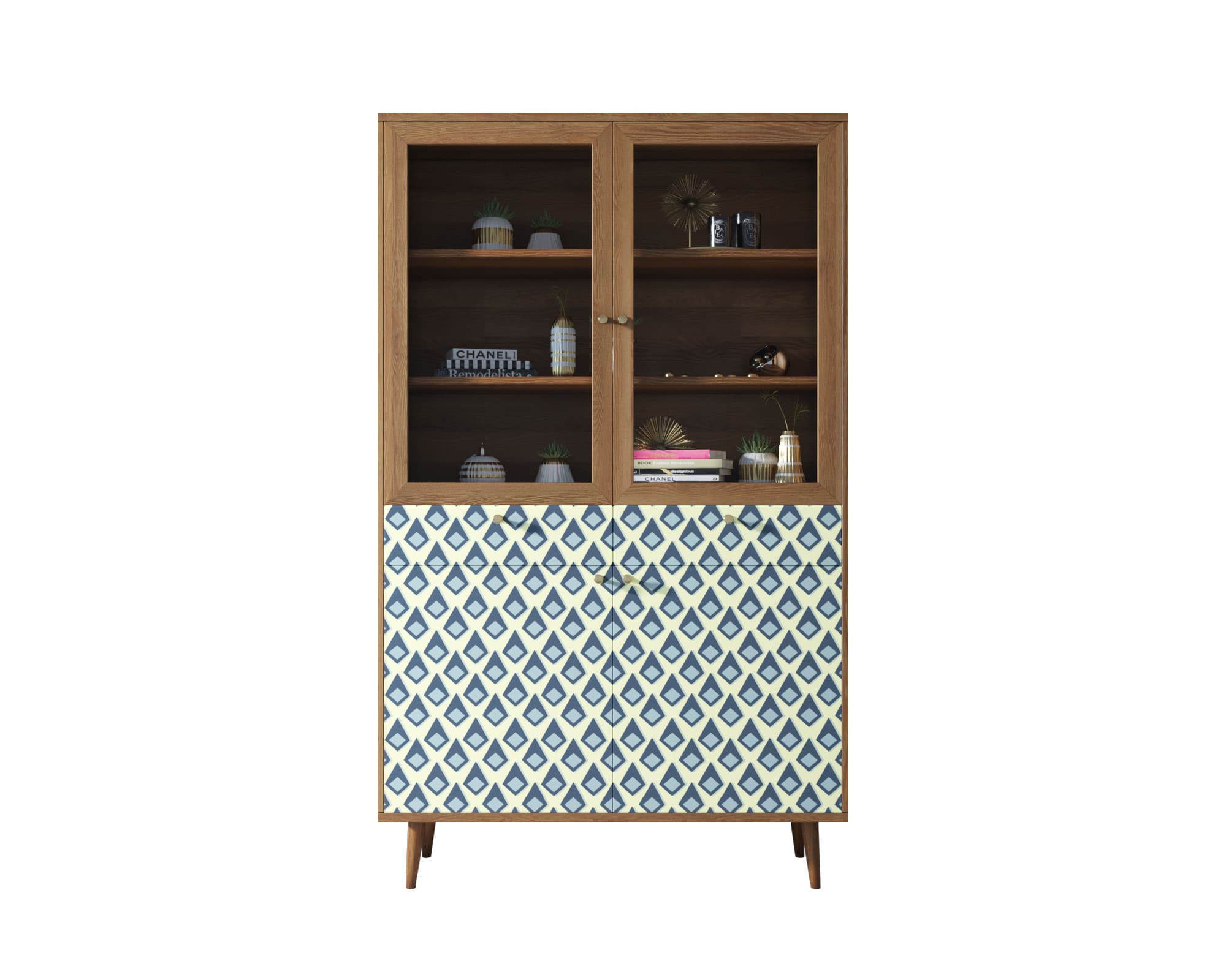 Буфет "Berber" имеет два выдвижных ящика на шариковых направляющих (могут быть заменены на доводчики по желанию). Низ буфета разделен на две секции, которые скрываются за двумя дверками, и полкой. Верхняя часть закрывается стеклянными дверцами, а на двух полках отлично расположится декор или кухонная утварь.