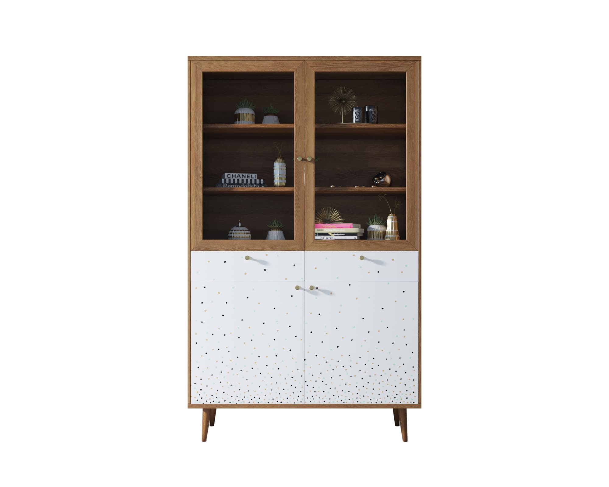 Буфет "Berber" имеет два выдвижных ящика на шариковых направляющих (могут быть заменены на доводчики по желанию). Низ буфета разделен на две секции, которые скрываются за двумя дверками, и полкой. Верхняя часть закрывается стеклянными дверцами, а на двух полках отлично расположится декор или кухонная утварь.