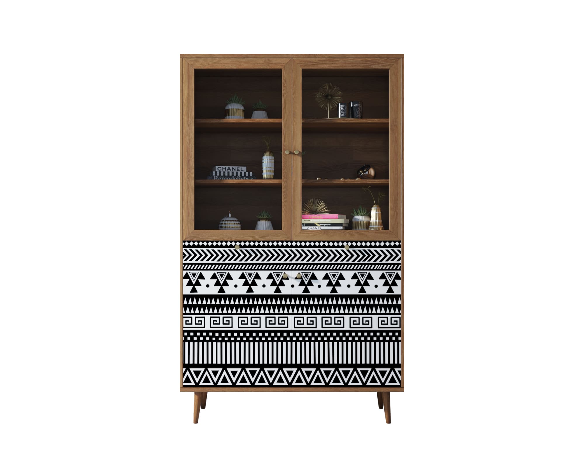 Буфет "Berber" имеет два выдвижных ящика на шариковых направляющих (могут быть заменены на доводчики по желанию). Низ буфета разделен на две секции, которые скрываются за двумя дверками, и полкой. Верхняя часть закрывается стеклянными дверцами, а на двух полках отлично расположится декор или кухонная утварь.