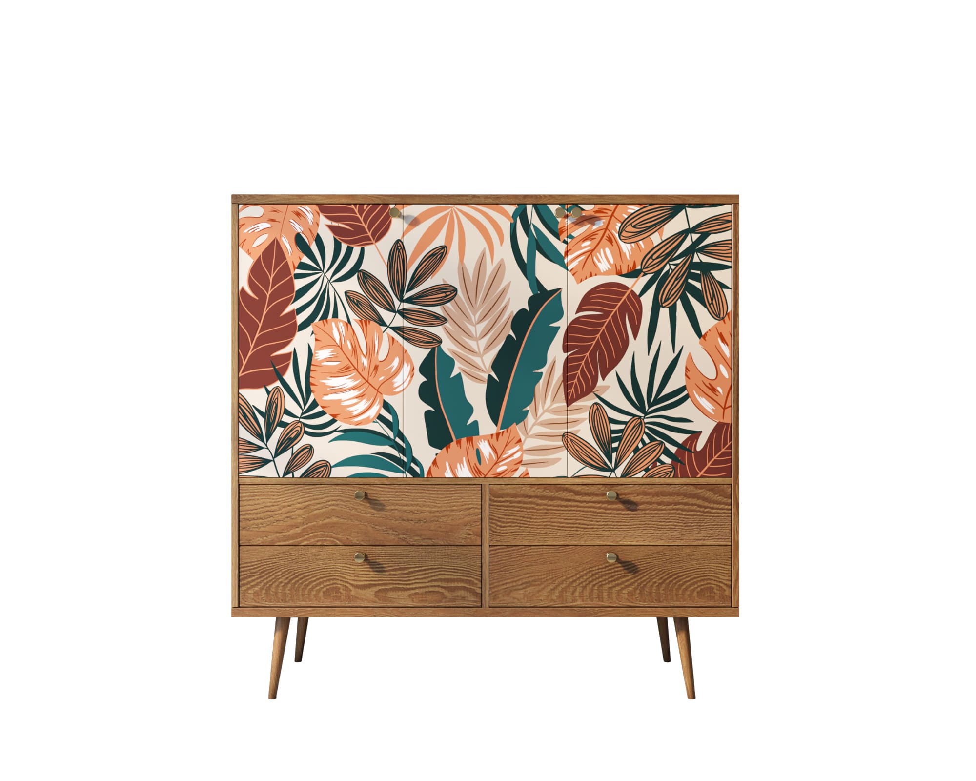 Большой комод "Berber" имеет четыре вместительных ящика на металлических направляющих и три дверки на петлях с доводчиком. Пространство за дверками поделено на две секции, в каждой из которой есть съемная полка регулируемая по высоте в трех режимах.