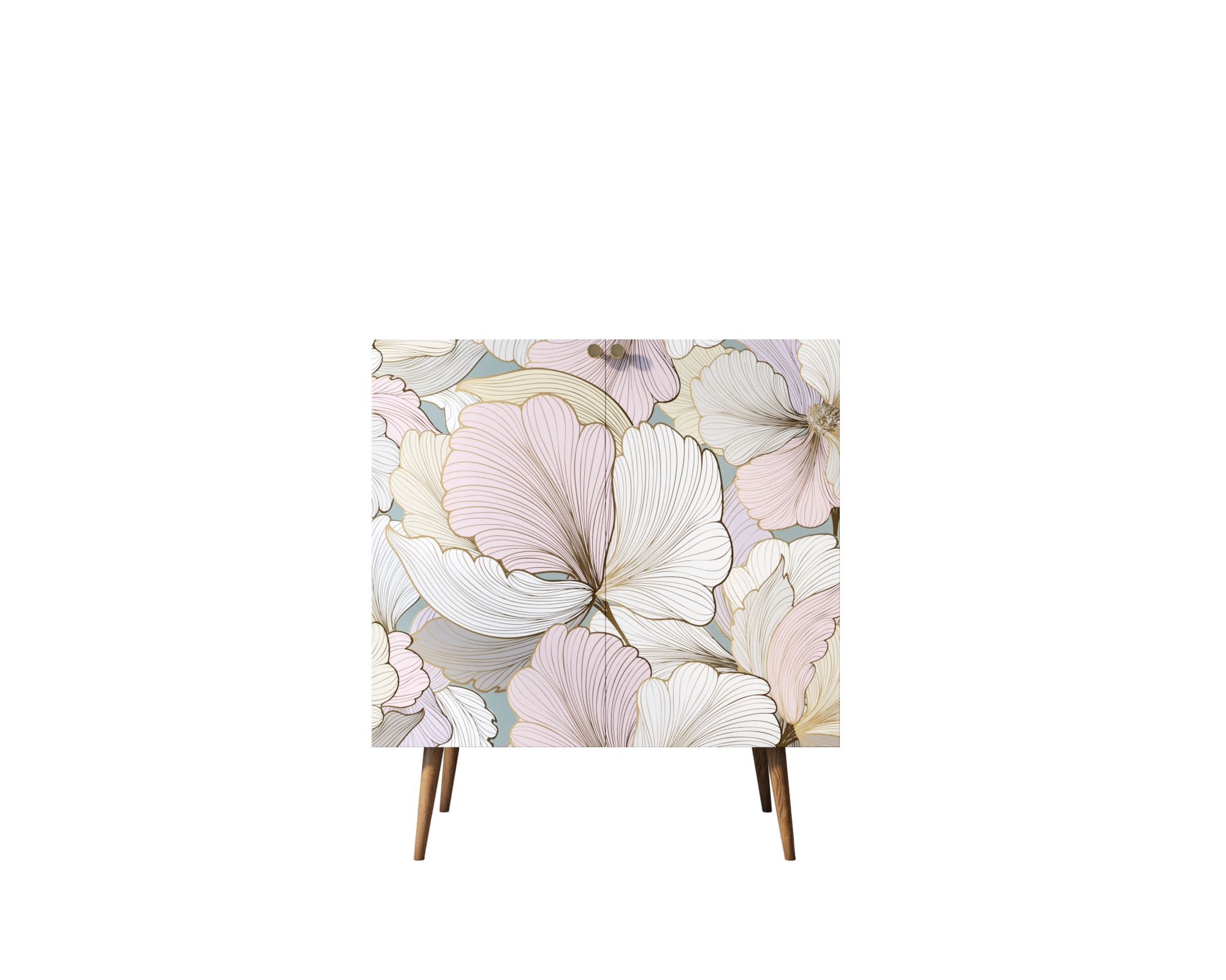 Компактная модель комода скрывает за дверками нишу, разделенную на две части полкой регулируемой по высоте. Корпус прямоугольной формы, а ножки изготовлены из прочного массива ясеня. Комод привлекает внимание спокойным принтом на фасаде.