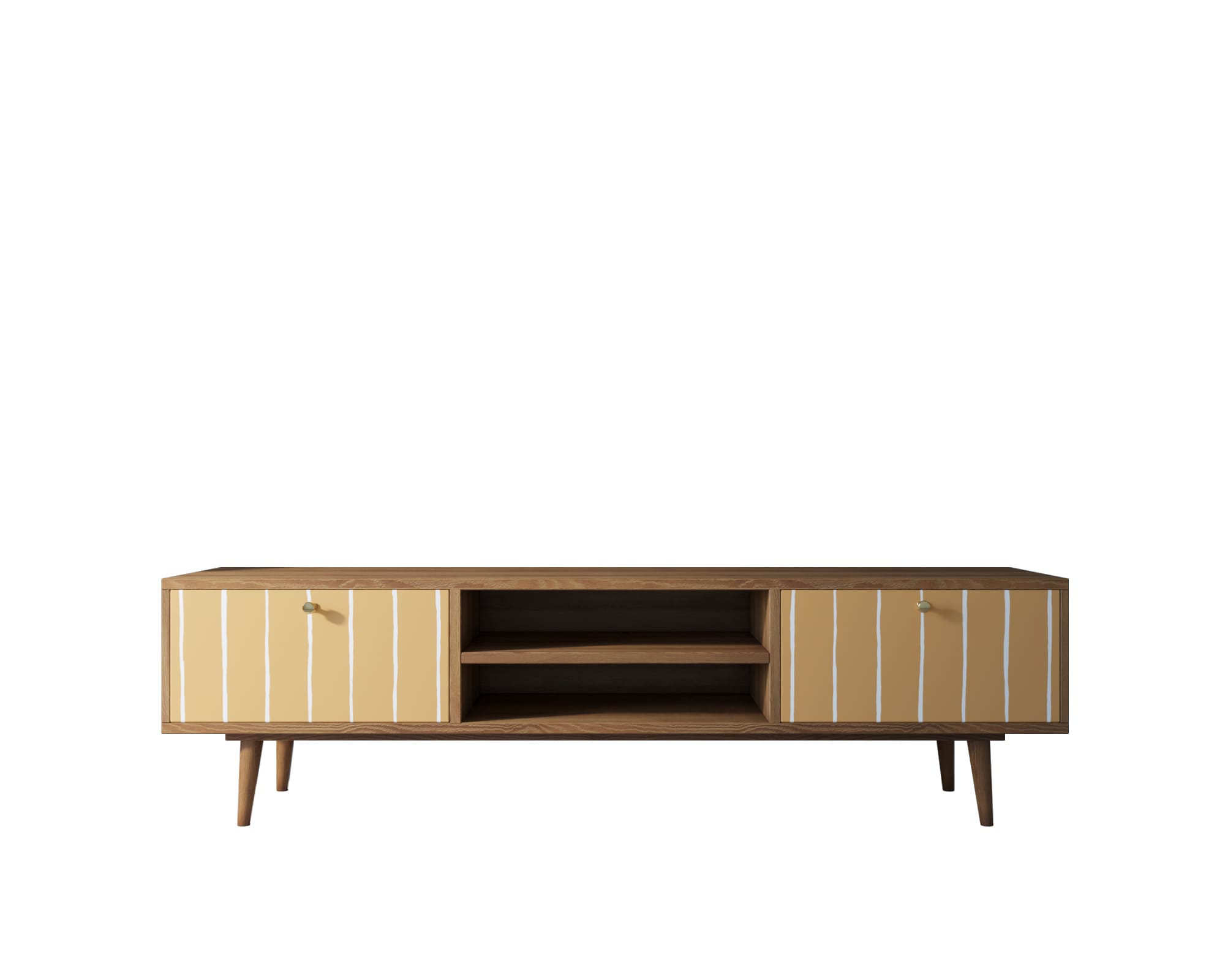 Комод под TV Berber имеет две дверцы украшенные дизайнерским принтом и центральную нишу разделенную съемной полкой. Ножки изготовлены из массива ясеня.