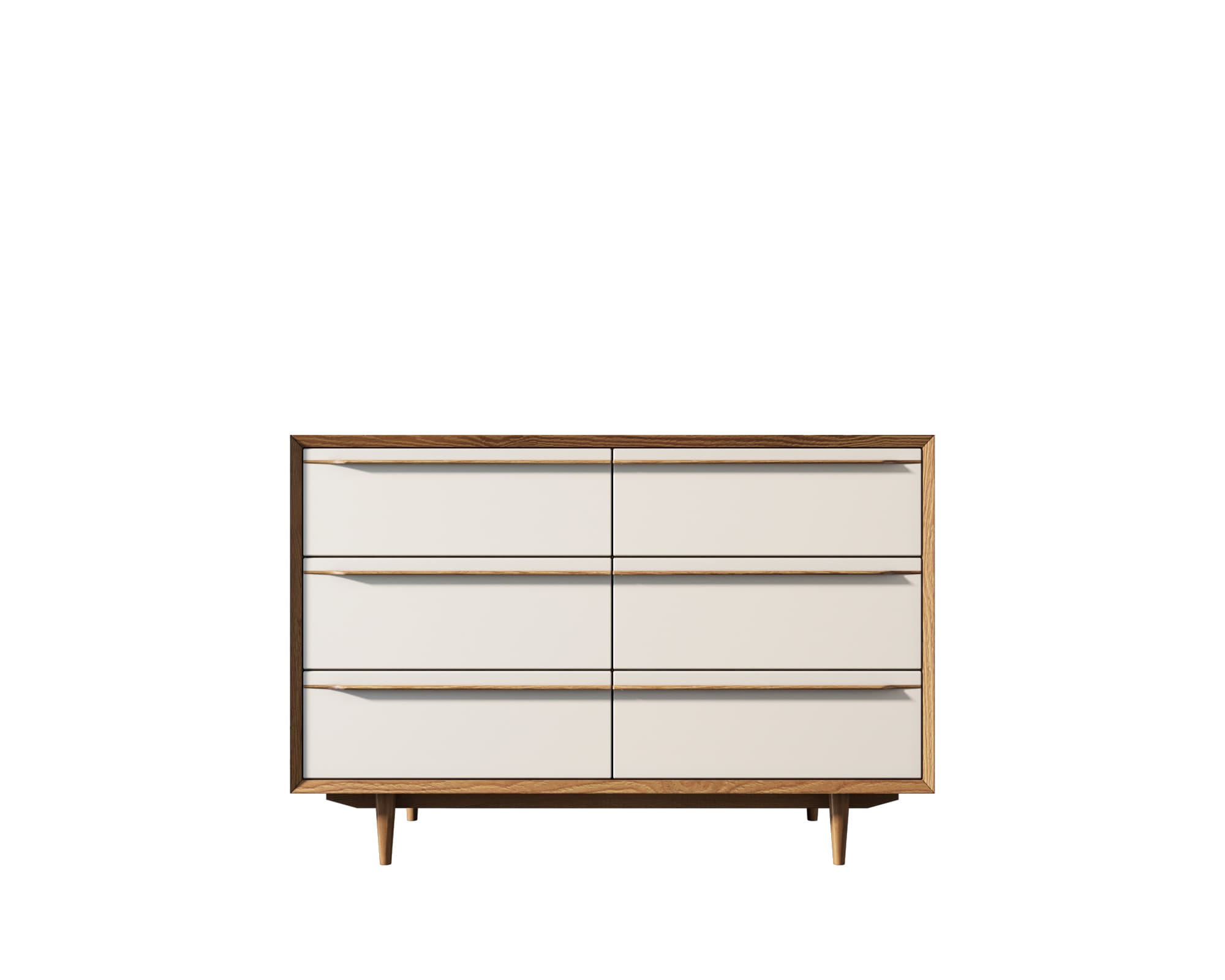 Комод "Bruni" с шестью ящиками. Скандинавский стиль в интерьере - это универсальность, простота и в то же время непревзойденная индивидуальность. Лаконичный, вместительный и очень практичный комод "Bruni" сочетает в себе все эти характеристики. Благородство дерева и строгость линий наполнят Ваш дом особой атмосферой.