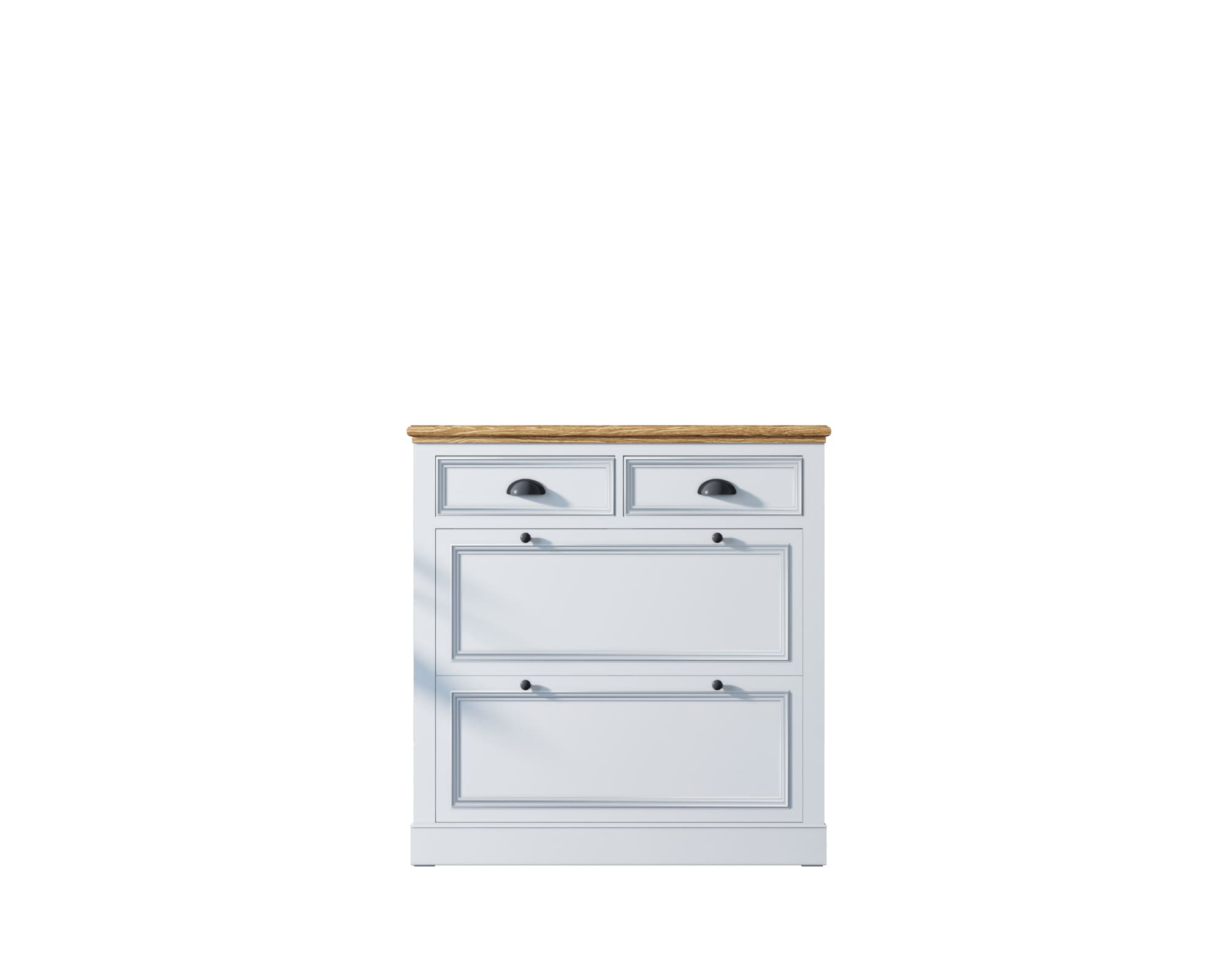 Комод для обуви "Palermo" арт PL1005 отличается небольшим размером. Он компактный, поэтому поместится даже в небольшом помещении. Будет прекрасно смотреться в прихожей, послужит для хранения не только обуви, но и различных аксессуаров, шляп, шапок. Чтобы опустить два нижних ящика, необходимо потянуть вниз за ручки. После этого удастся получить доступ ко всей имеющейся обуви. Дизайн комода простой, но элегантный, он будет отлично сочетаться с разными дизайнами интерьера. Например, классический, прованс, лофт. Комод для обуви "Palermo" арт PL1005 можно заказать в Москве и получить в сжатые сроки. Он выполнен из массива берёзы и МДФ, поэтому прослужит в течение продолжительного срока. Материал прочный, устойчивый к возникновению трещин, не портится под влиянием незначительного количества влаги. Высота комода достигает 95 см, а ширина – 90 см. Глубина составляет всего 32 см, поэтому изделие не займёт много места.