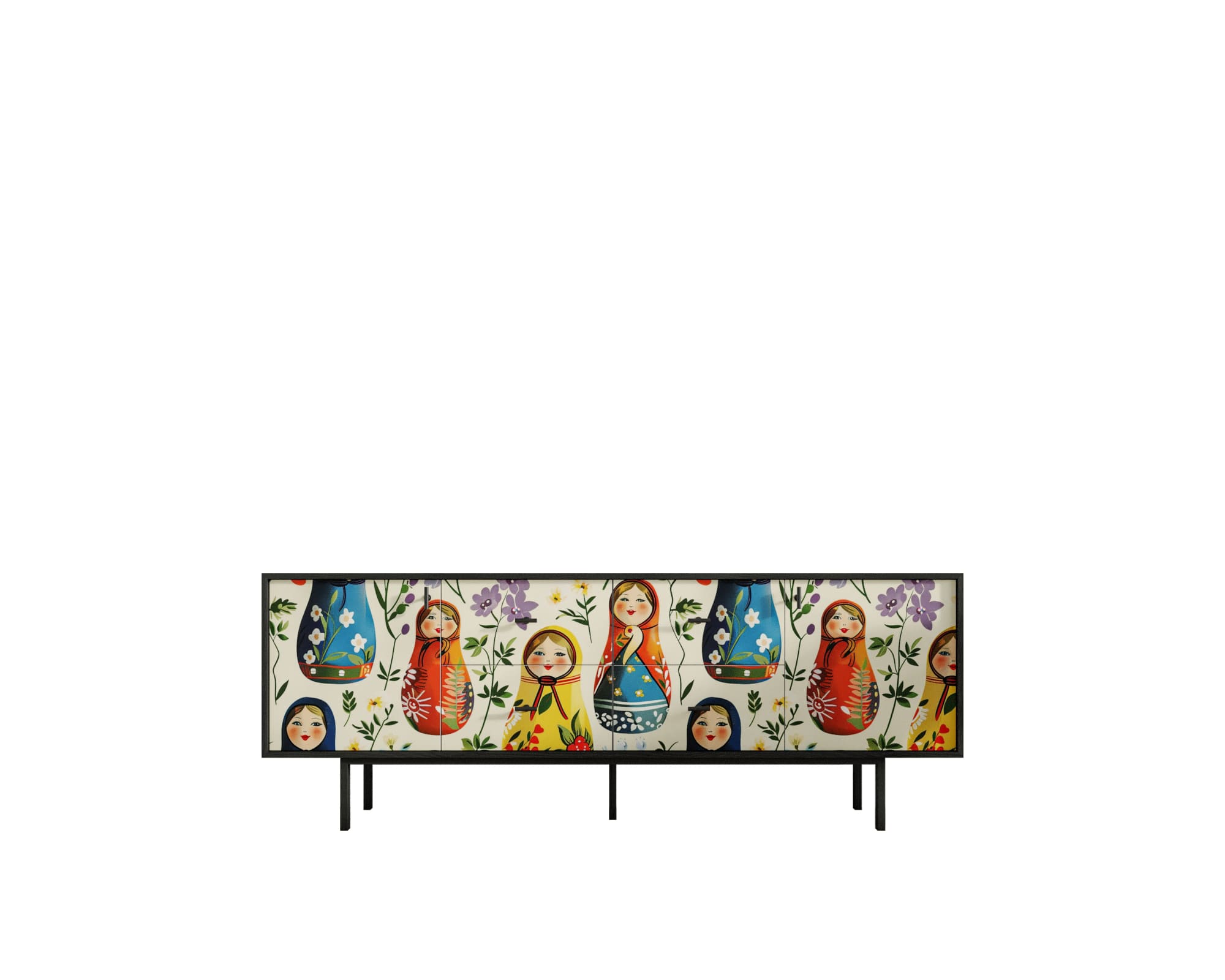 Комод две дверки и четыре ящика "Emerson" Матрешки арт EM19/Art04 — это предмет интерьера, способный создать в пространстве неповторимую атмосферу шика и изящества. Четкость линий, благородство форм и идеально продуманная эргономика способны впечатлить и удовлетворить требования самых искушенных покупателей и придать интерьеру особый колорит.