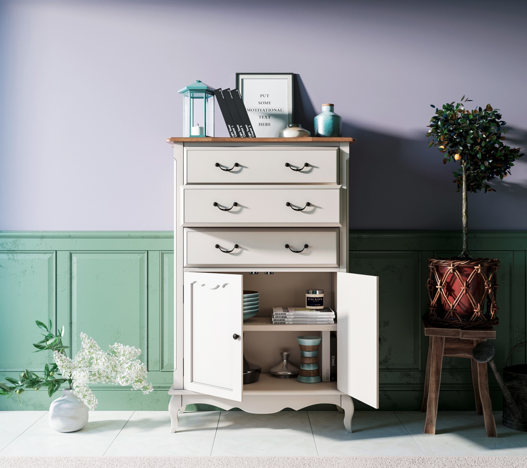 Комод с ящиками, 2 двери, стиль прованс, бежевый, "Leontina", ST9354