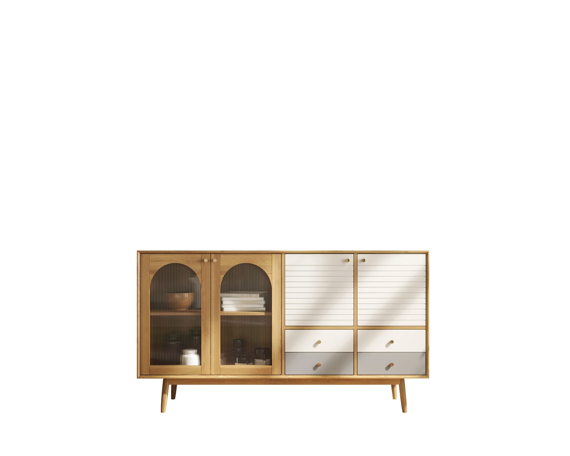 Этот комод выполнен в духе скандинавского минимализма — лаконичные формы, натуральное дерево, мягкие светлые тона. Комбинация светлого фасада с теплыми деревянными рамками придаёт конструкции визуальную лёгкость, а плавные линии и отсутствие лишнего декора подчёркивают сдержанную эстетику сканди-стиля. Простые ручки и слегка приподнятые ножки добавляют ощущение воздушности и свободы.