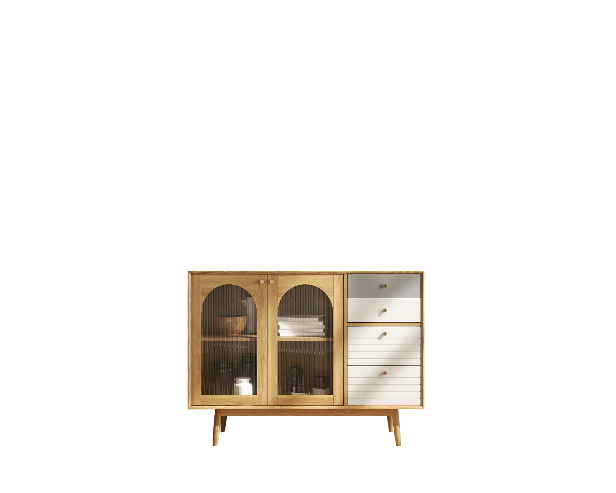 Этот комод выполнен в духе скандинавского минимализма — лаконичные формы, натуральное дерево, мягкие светлые тона. Комбинация светлого фасада с теплыми деревянными рамками придаёт конструкции визуальную лёгкость, а плавные линии и отсутствие лишнего декора подчёркивают сдержанную эстетику сканди-стиля. Простые ручки и слегка приподнятые ножки добавляют ощущение воздушности и свободы.