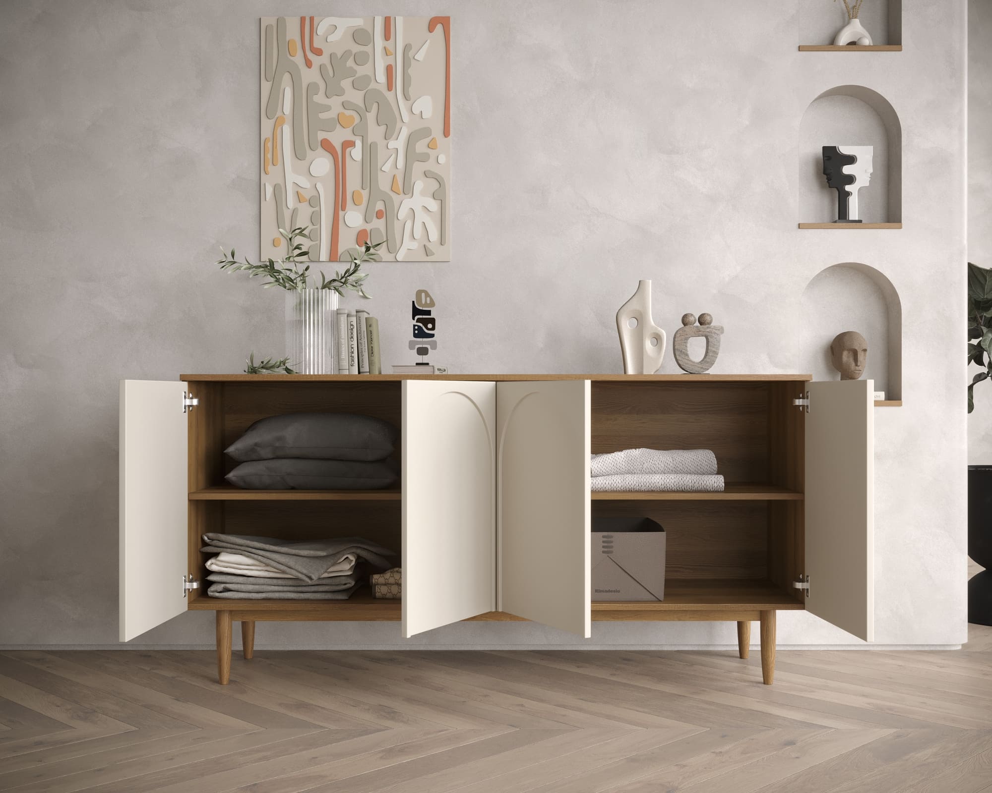 Комод распашной, 4 двери, стиль джапанди, бежево-коричневый, "Arka", AR01