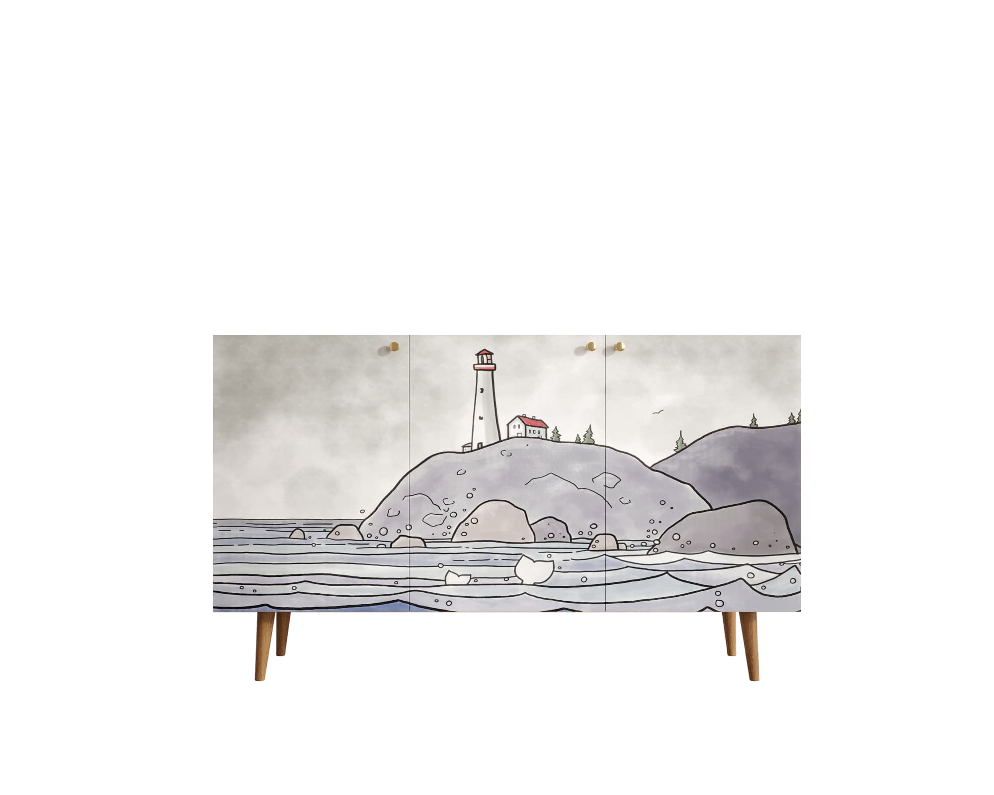 Комод с тремя дверками "Девушка и чайки" арт BB01/Art05