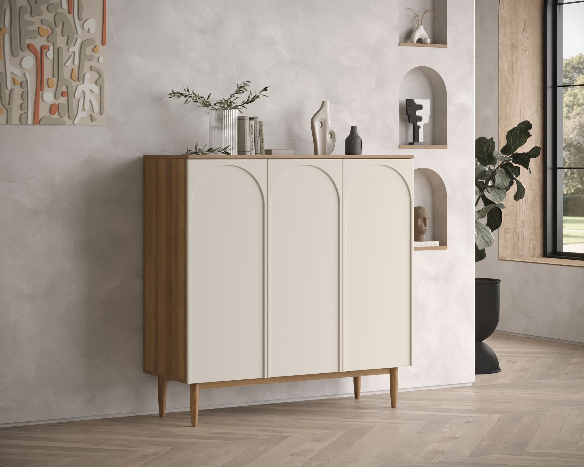Комод распашной, 3 двери, стиль джапанди, бежево-коричневый, "Arka", AR19