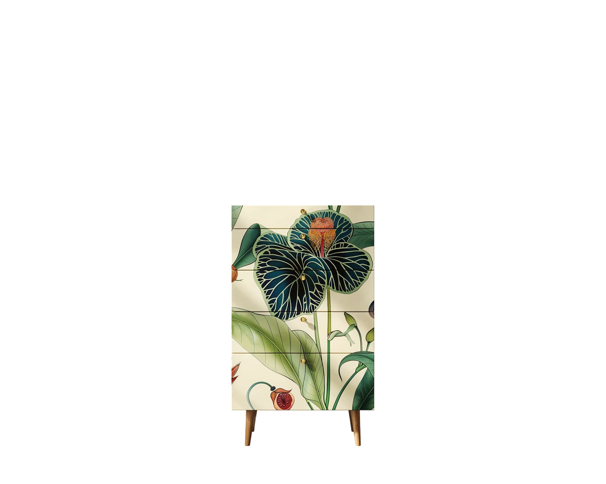 Комод высокий "Berber" принт 7. Высокий комод "Berber" имеет 5 выдвижных ящика на металлических направляющих. Комод достаточно высокий и узкий, что позволяет его применять практически везде, так как он не займет много места - спальня, гостиная, прихожая или в детской. А ящики позволят навести порядок и спрятать все мелочи за стильный принт.