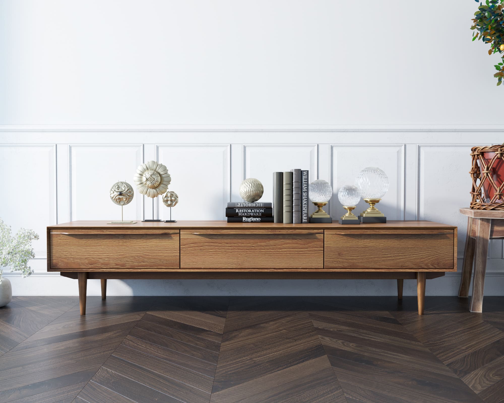 Скандинавский стиль характерен простотой, минимализмом и функциональностью. Лаконичная, стильная и практичная консоль под TV "Bruni" сочетает в себе все эти характеристики. Благородство дерева и строгость линий наполнят Ваш дом особой атмосферой.