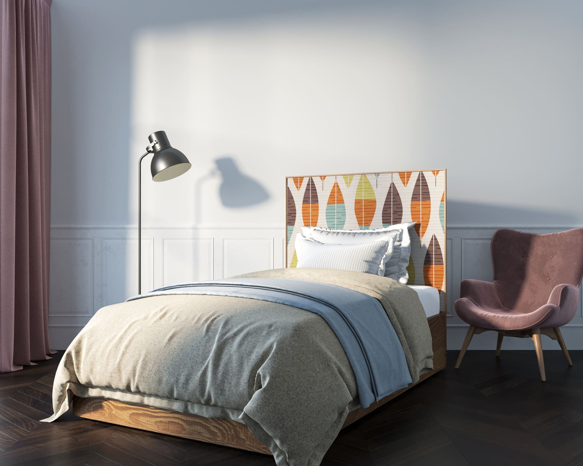 Двуспальная кровать "Berber" 120 на 200 принт 48 удачно впишется в светлый интерьер спальни, оформленной в любом стиле. Оригинальный рисунок принта в виде ярких узоров на белом фоне на высоком изголовье оживит самую скучную обстановку, создаст ощущение солнечного света.