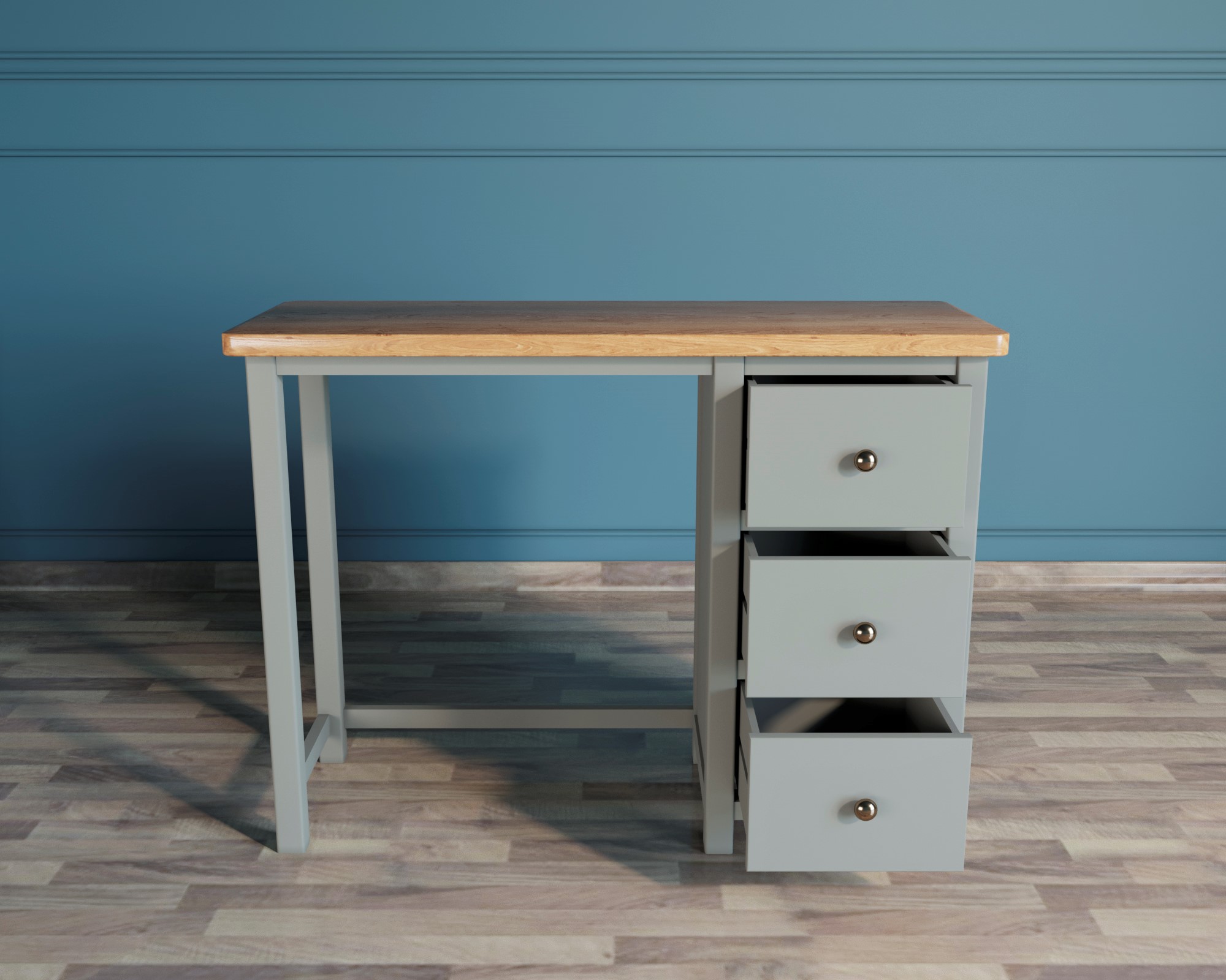 Стиль кантри в интерьере - это прежде всего натуральность материалов, уютная простота и удобство. Изящный и практичный рабочий стол "Jules Verne" сочетает в себе все эти характеристики. Презентабельный серый оттенок, кованые ручки и фактурная ясеневая столешница придадут интерьеру еще немного шарма.