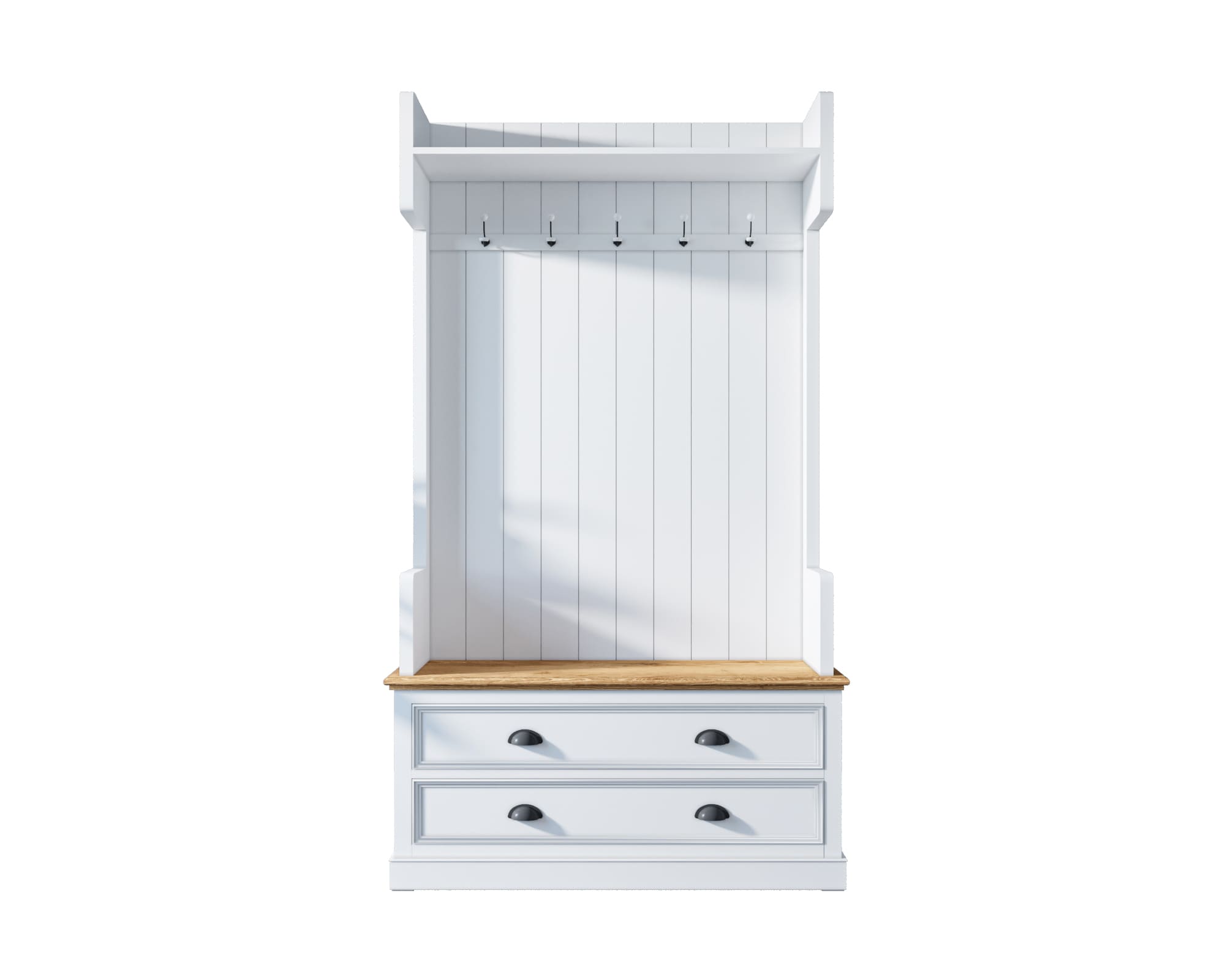 Прихожая в стиле Прованс "Palermo" арт PL1025 изготовлена из качественных материалов – МДФ и массива берёзы. Они выглядят красиво и отличаются высокой прочностью, устойчивостью к износу. По этой причине можно даже не сомневаться в том, что данная мебель способна долго прослужить. Она будет исправно выполнять свои функции. Прихожая выполнена в стиле Прованс, но она легко вольется в любой дизайн интерьера. Глубина изделия составляет 40 см, высота – 190 см, а ширина – 110 см. Вес мебели достигает 50 кг. Можно заказать прихожую в стиле Прованс "Palermo" арт PL1025 в Москве, затем дождаться, пока она будет доставлена. Над данным изделием трудились опытные дизайнеры, которые постарались добиться ее превосходного внешнего вида. Данный предмет интерьера окрашен в белый цвет, но также присутствует светло-коричневая вставка. Прихожая оснащена пятью крючками для верхней одежды, а также функциональными полками и ящиками. Она удобна в эксплуатации, поэтому понравится каждому человеку.