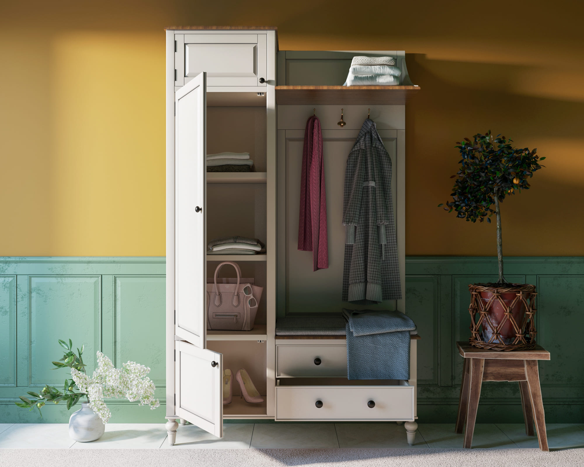 Этот шкаф, изготовленный из прочного массива березы сэкономит пространство прихожей и станет универсальным хранилищем для вещей или обуви. Белоснежный цвет в сочетании с ясеневой столешницей наполнят Ваш дом французским шармом. Взгляните по-новому на привычные вещи!