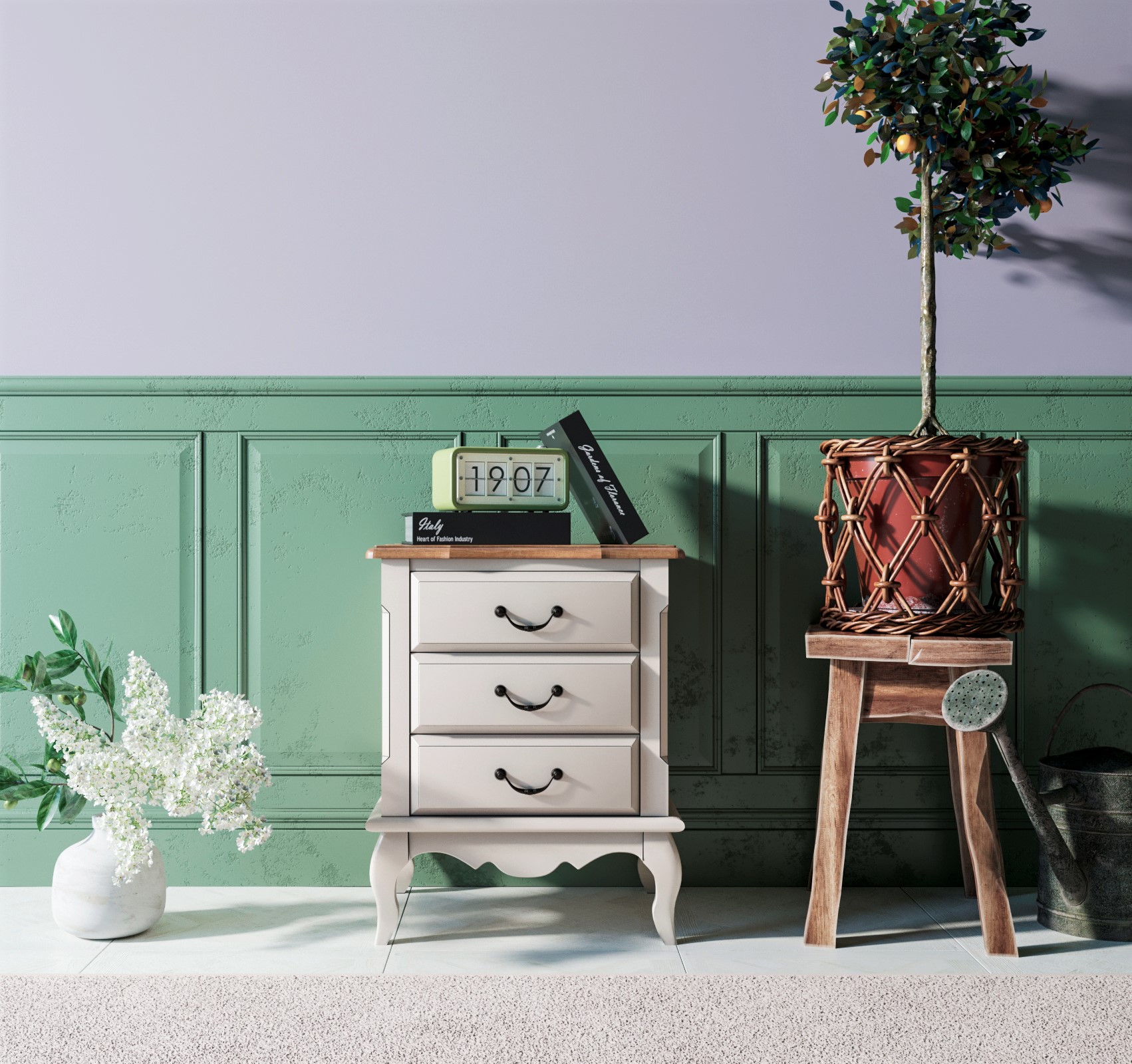 Вместительная тумбочка снабжена тремя выдвижными ящиками. Компактные размеры 45*37 позволят не расходовать много места рядом с кроватью, но при этом, хранить нужные вещицы или предметы на расстоянии вытянутой руки. Тумба выполнена в стиле Прованс. Изящные гнутые ножки, элегантные формы, кованая фурнитура - все это неотъемлемые атрибуты этого французского стиля. Данный стиль отлично впишется в спальню или прихожую, добавив легкости и романтичности интерьеру.