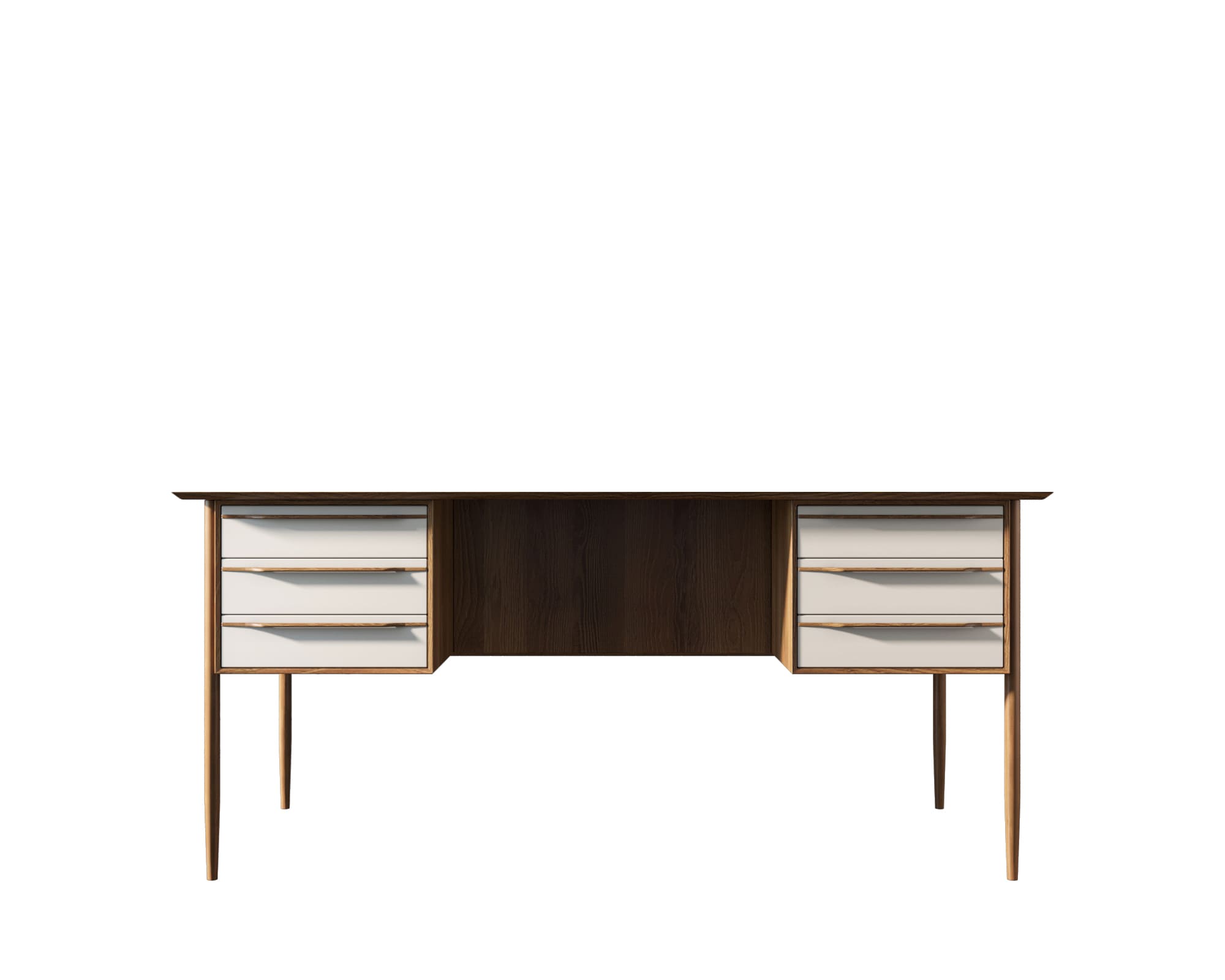 Письменный рабочий стол "Bruni" выполнен из шпона и прочного массива ясеня, а шесть выдвижных ящиков обеспечат хранение необходимых для работы вещей. Стол высотой 75 см и шириной 166 см станет идеальным решением для Вашего домашнего кабинета!