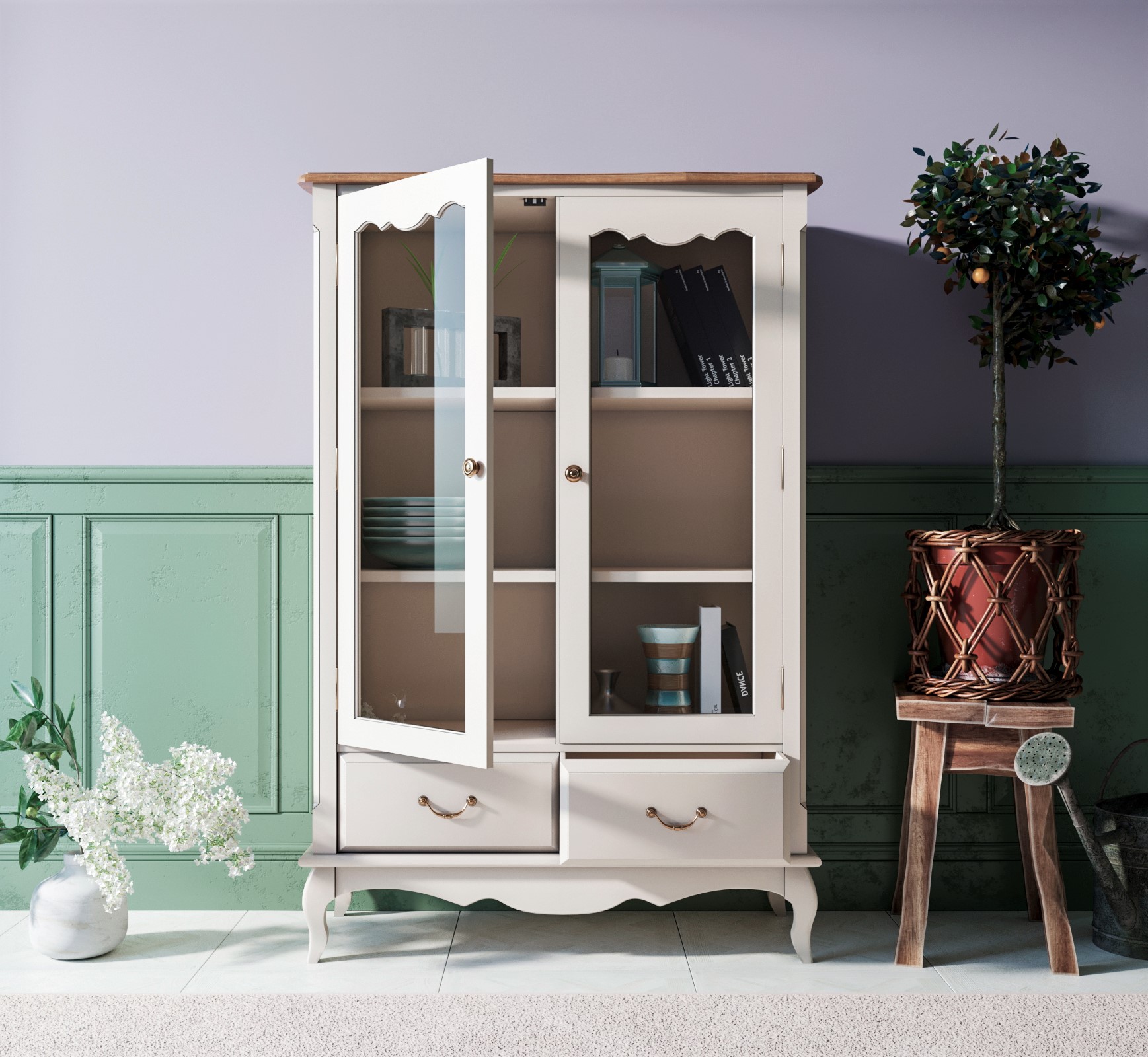 Шкаф Leontina для посуды окружит Вас неповторимым элегантным шармом. Утонченный кремовый цвет это блестящее сочетание французской изысканности, а столешница из массива ясеня подарит Вам чувство естественности и комфорта. Взгляните по-новому на привычные вещи!