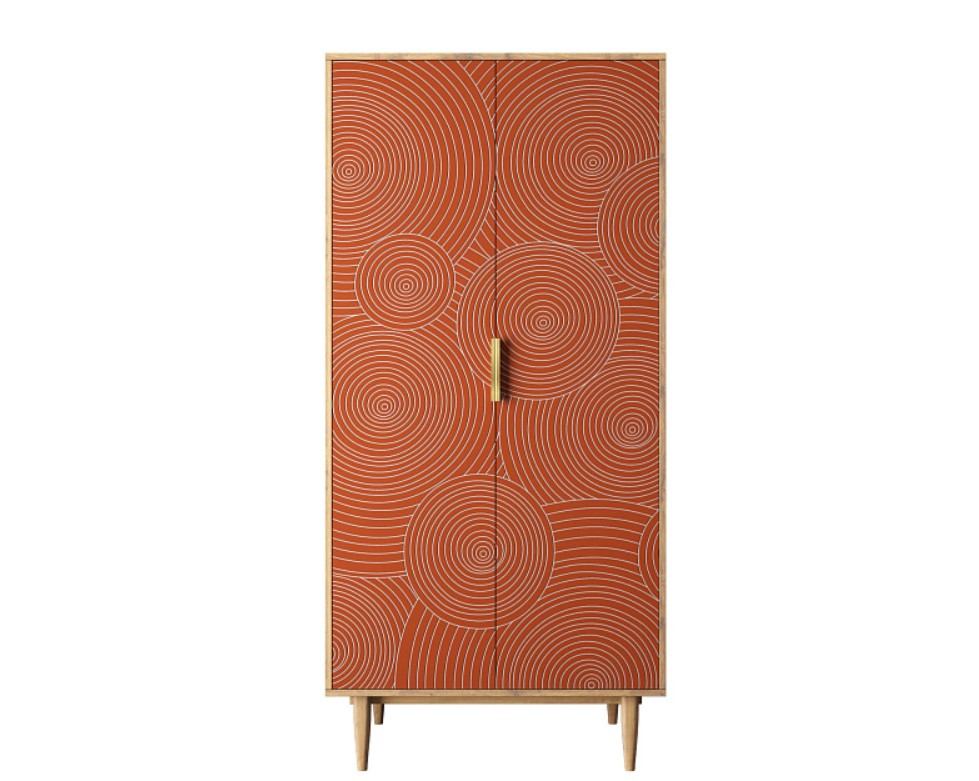 Шкаф распашной 2 двери с ящиками, скандинавский, красный, "Line", R24/red