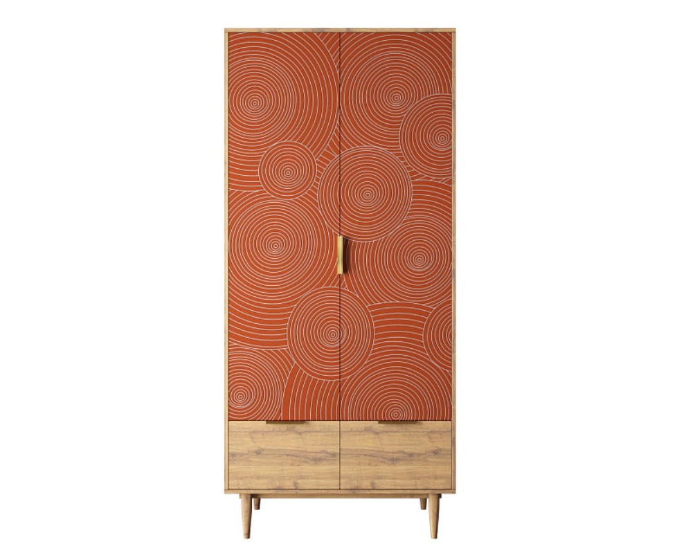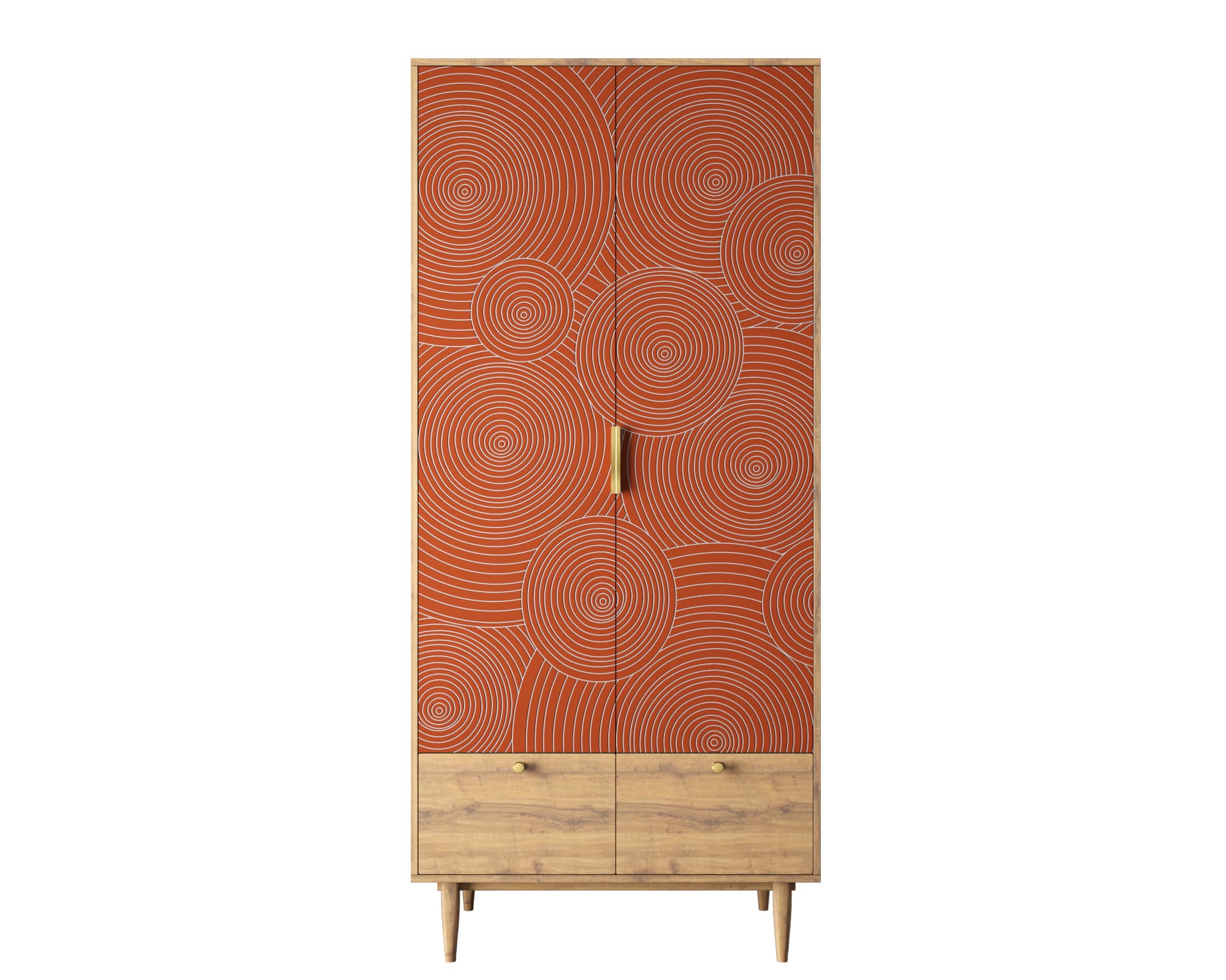 Шкаф распашной 2 двери с ящиками, скандинавский, красный, "Line", R26/red