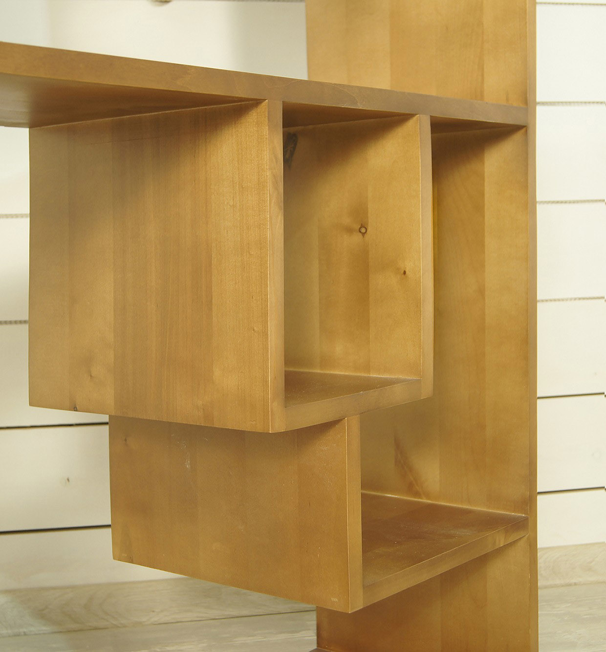 Открытый стеллаж в стиле Лофт «Aquarelle Birch» в стиле лофт сочетают минималистичный дизайн форм и богатый рисунок натурального дерева. Они изготовлены из массива березы. Необычное расположение полок позволяет оптимально организовать пространство для хранения различных предметов. Высота в 195 см удобна для большинства пользователей.