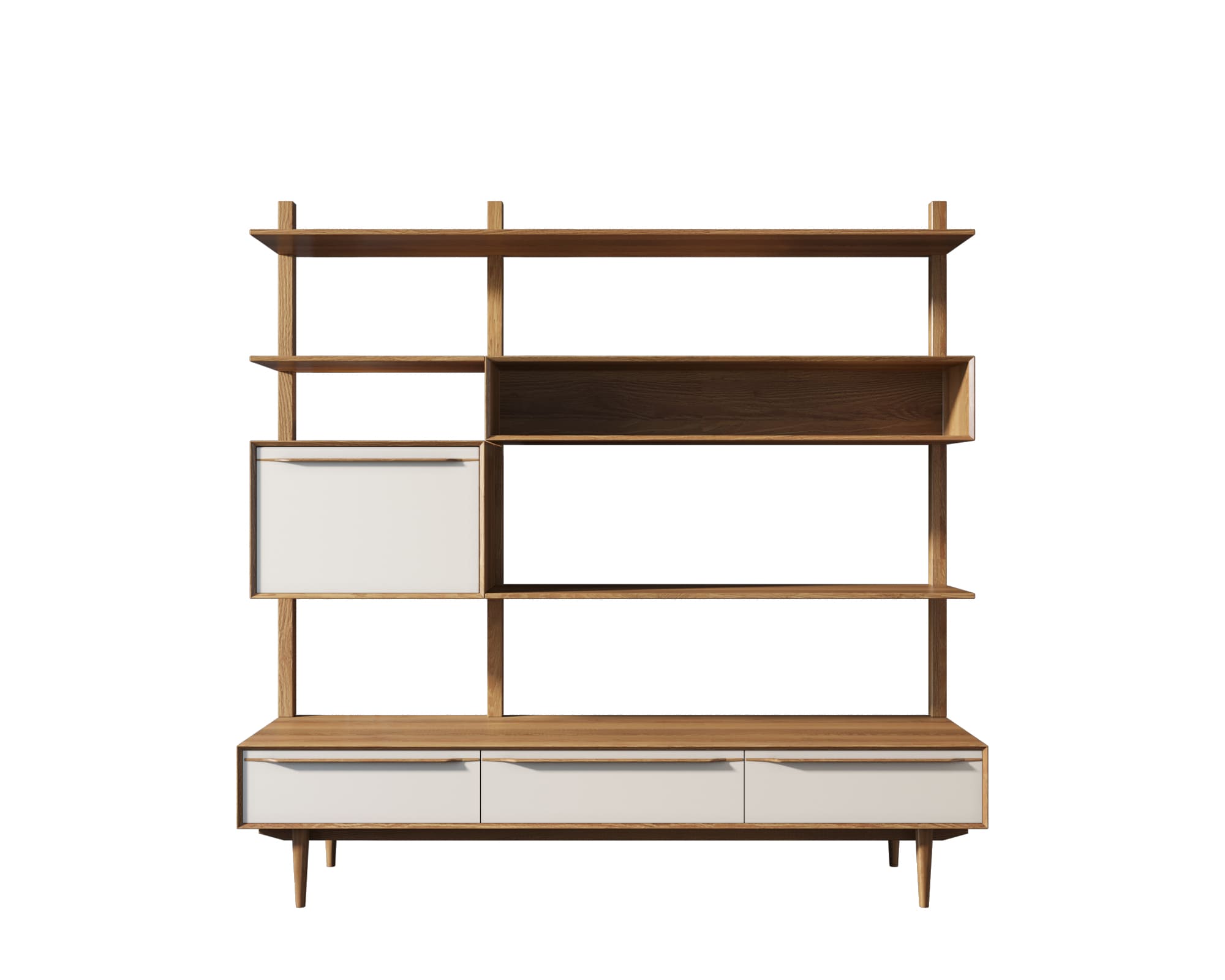 Скандинавский стиль характерен простотой, минимализмом и функциональностью. Стеллаж "Bruni" определенно станет главным функциональным предметом любого пространства Вашей квартиры или дома, неся в себе лаконичность, стиль и практичность. Благородство дерева и строгость линий наполнят Ваш дом особой атмосферой.