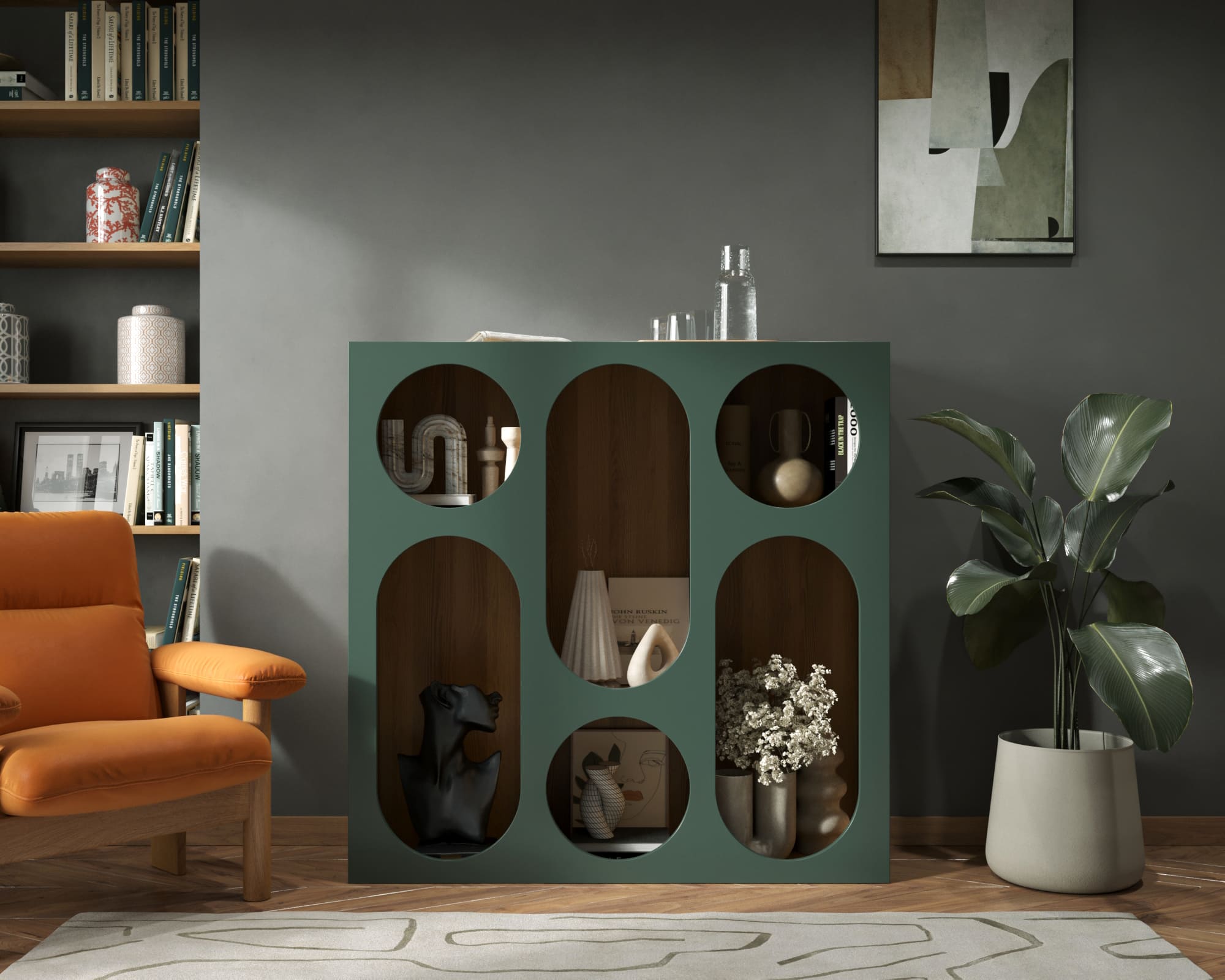Стеллаж в скандинавском стиле, выполненный в приглушенном зеленом цвете, представляет собой идеальное сочетание простоты, функциональности и природной эстетики. Этот стильный и современный элемент мебели привносит в интерьер свежесть и уют, характерные для северных стран, а его природная цветовая гамма и минималистичный дизайн идеально подходят для создания комфортного и расслабляющего пространства.