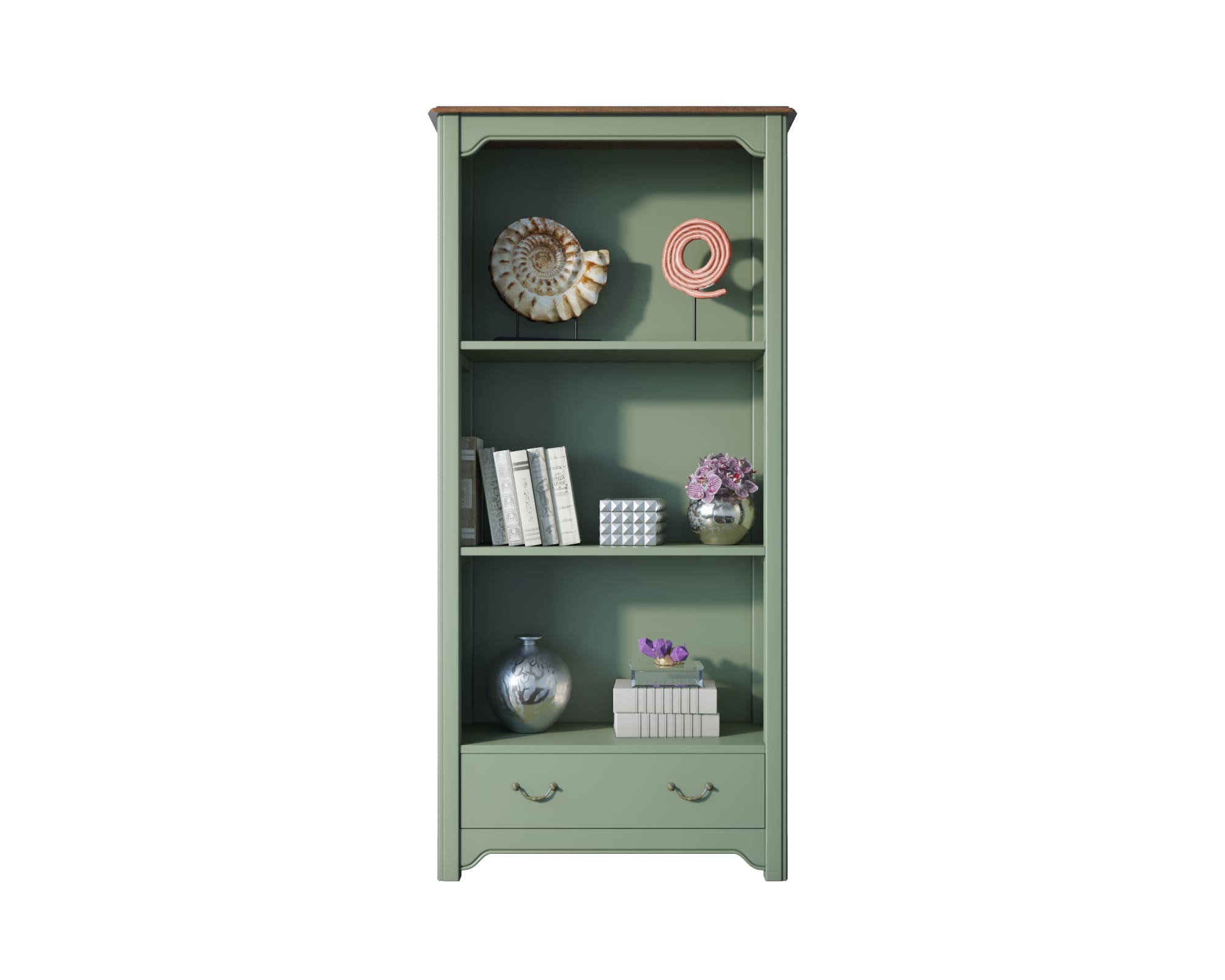 Стеллаж Olivia, выполненный в стиле кантри, позволяет решить одновременно 2 задачи: наполнение пространства традиционностью и лаконичностью форм и функциональное размещение Ваших вещей, он идеален например для книг и посуды.